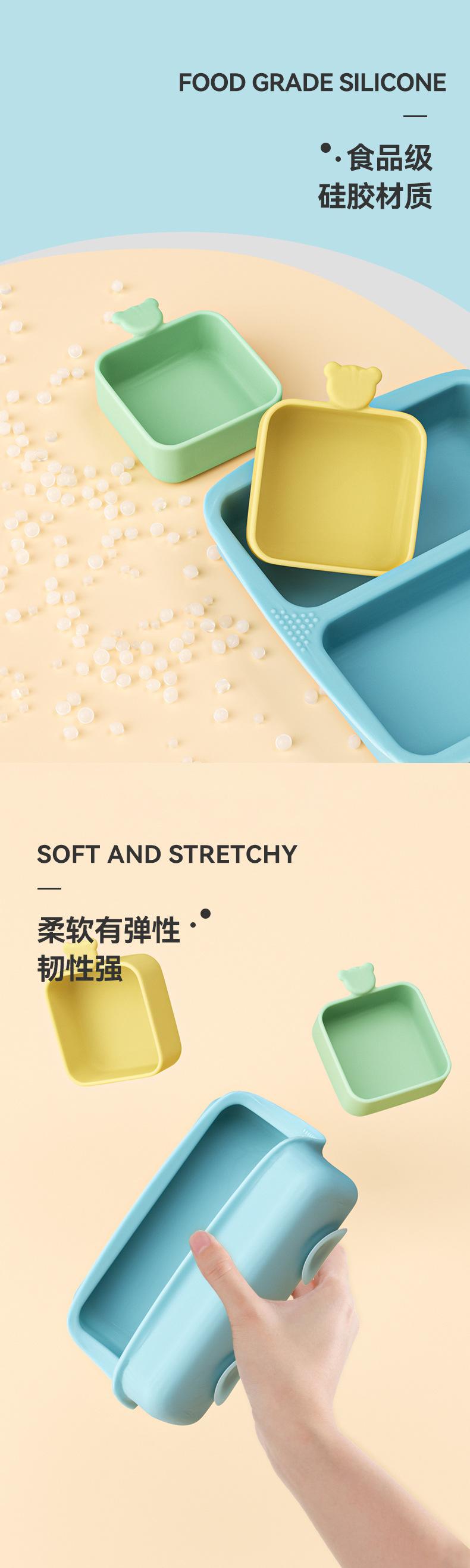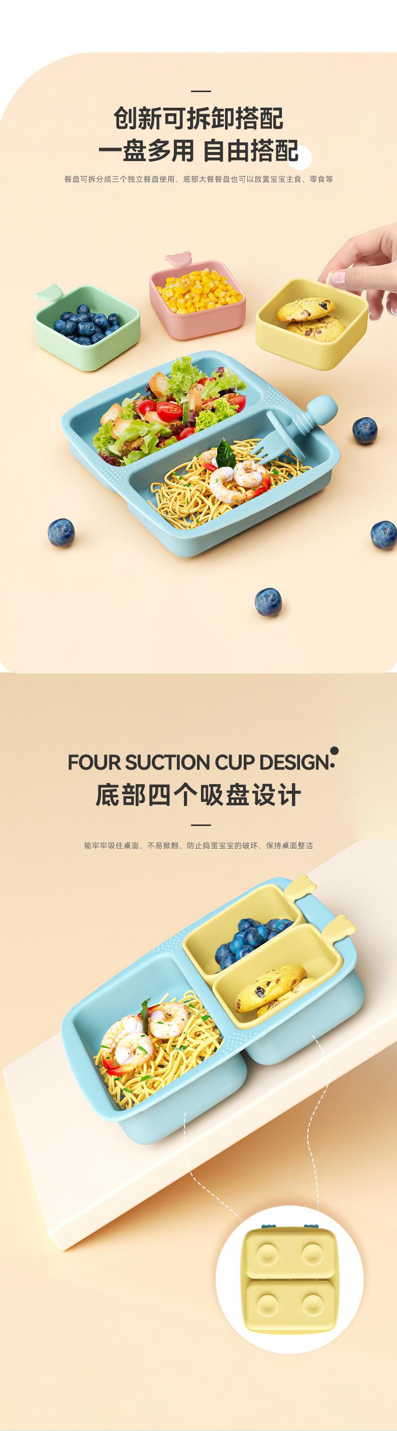 Plato de Cena de Silicona para Bebé Estilo Ins con Ventosa y Compartimentos, Tazón para Comer para Bebé, Tazón para Alimentos Anticaída, Vajilla para Niños