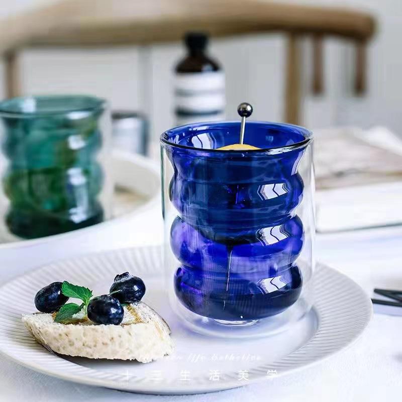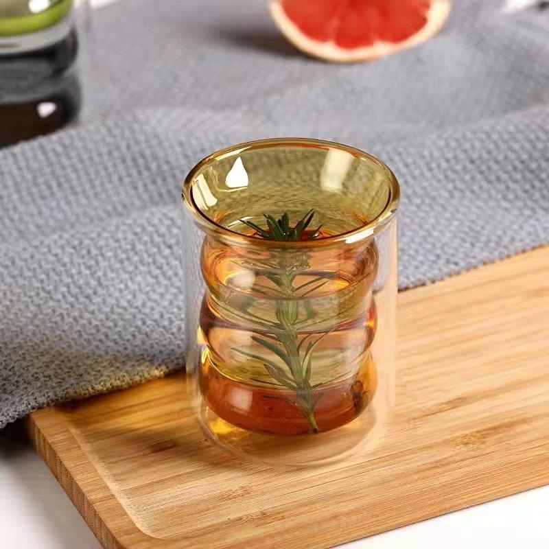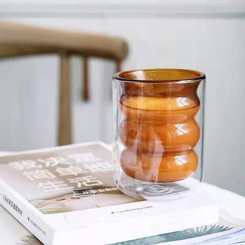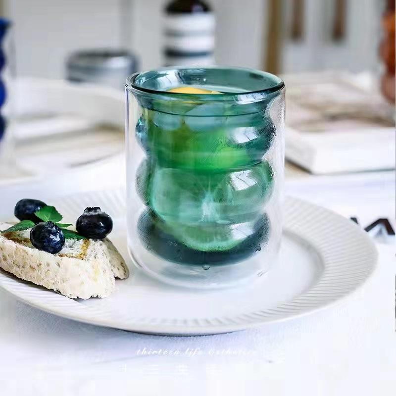 Vaso de agua de vidrio doble con tapa, resistente al calor, con rosca, para el hogar, con aislamiento térmico, para bebidas frías, leche, jugo y café.