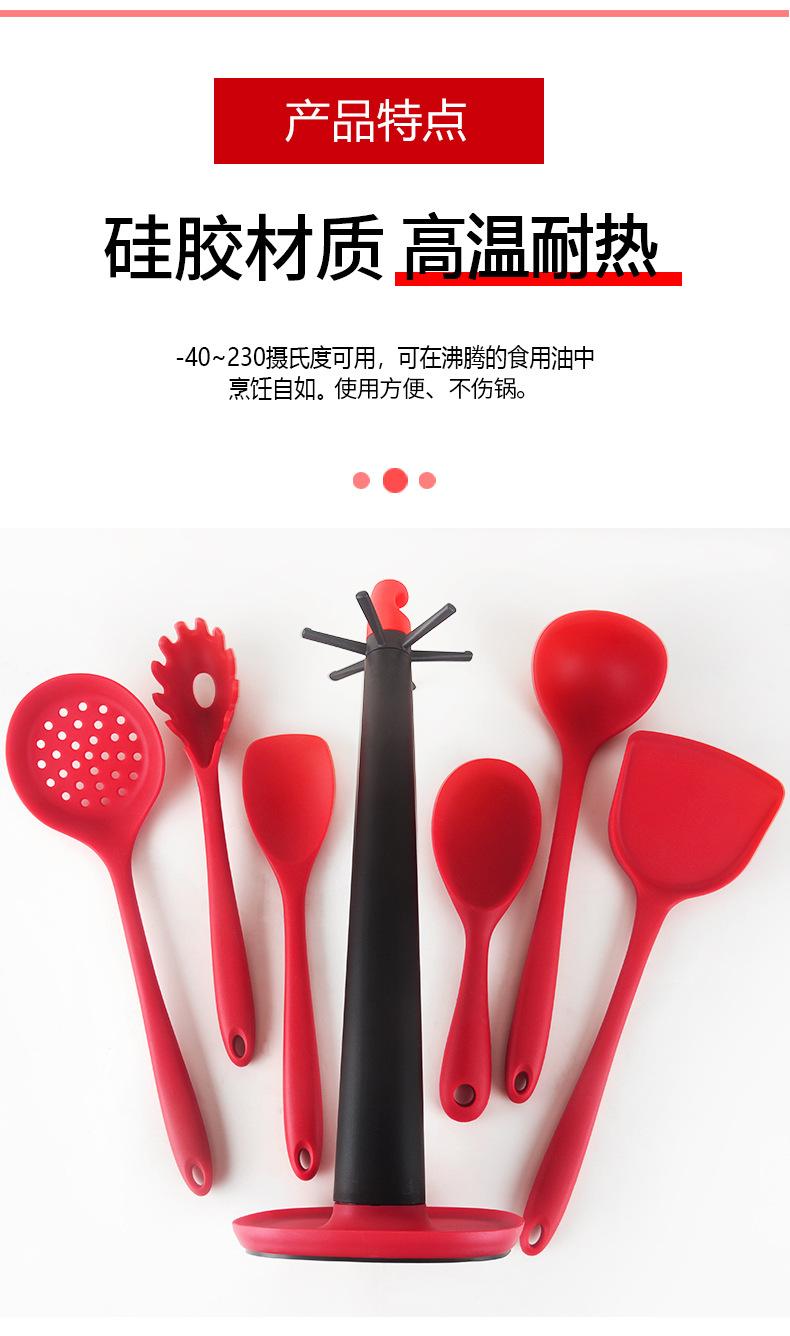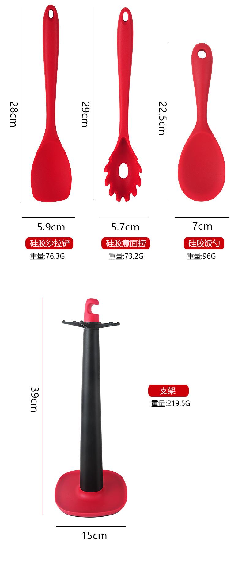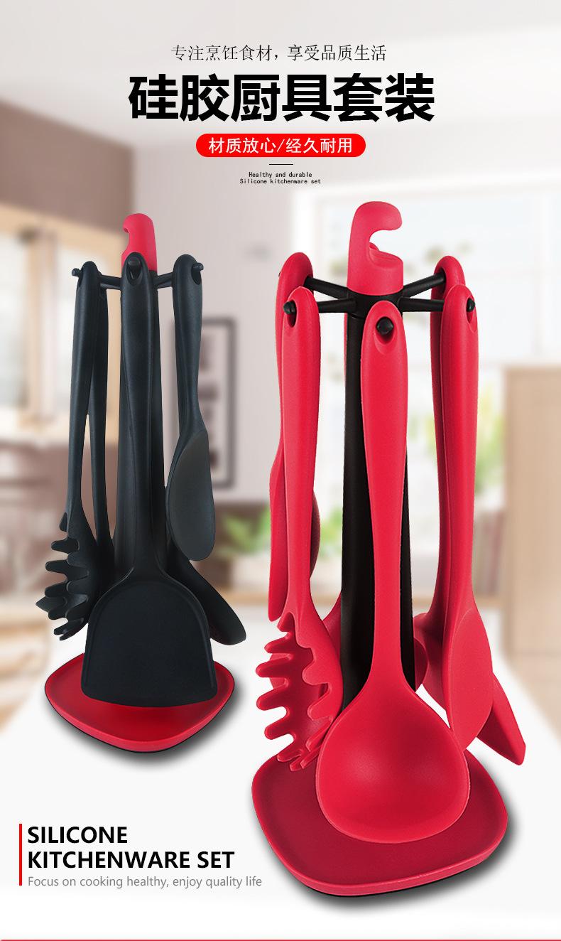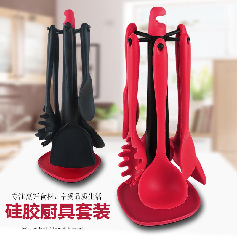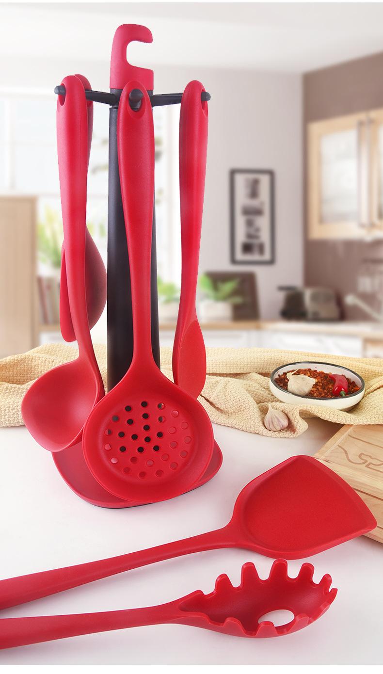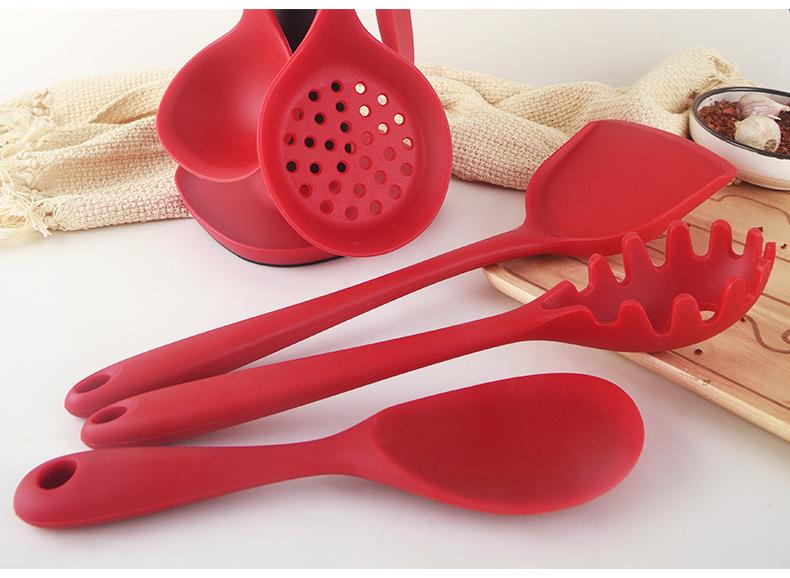 Utensilios de Cocina Domésticos de Silicona Juego de 6 Piezas Todo en Uno con Soporte Espátula para Cocinar Antiadherente y Cuchara para Sopa