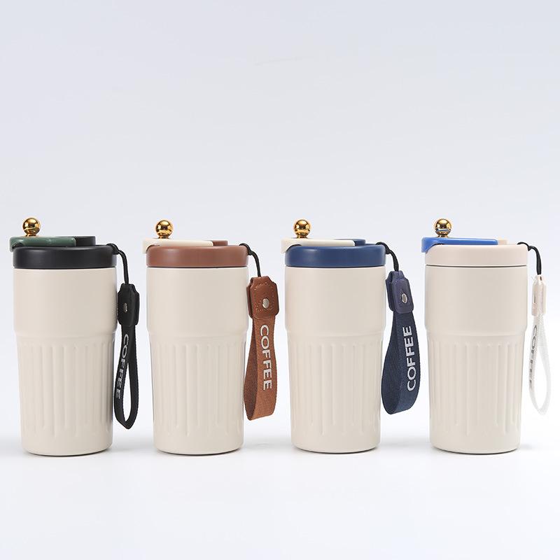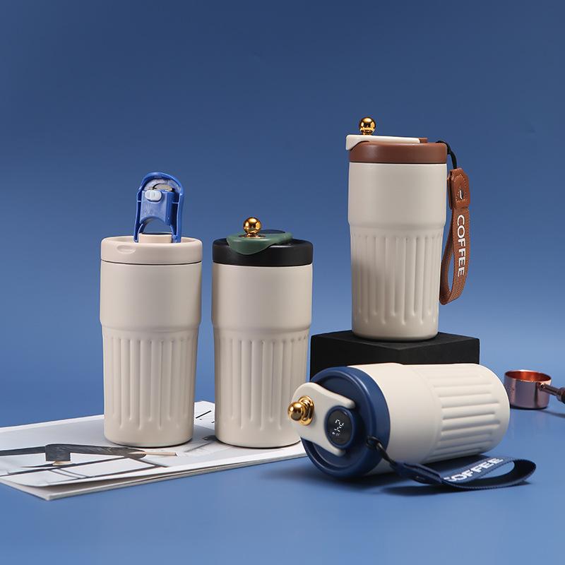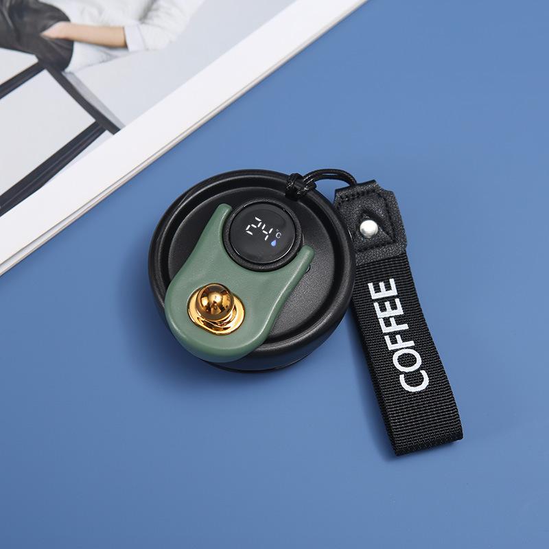 Nueva taza de café de acero inoxidable con pantalla de temperatura inteligente, taza de aislamiento al vacío de doble capa, taza portátil para exteriores con cuerda, taza portátil al por mayor