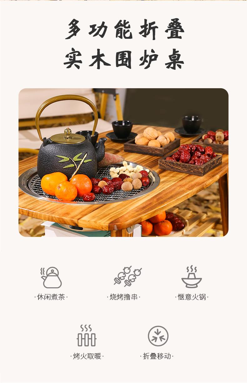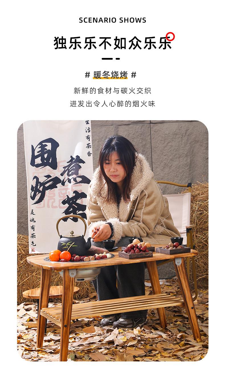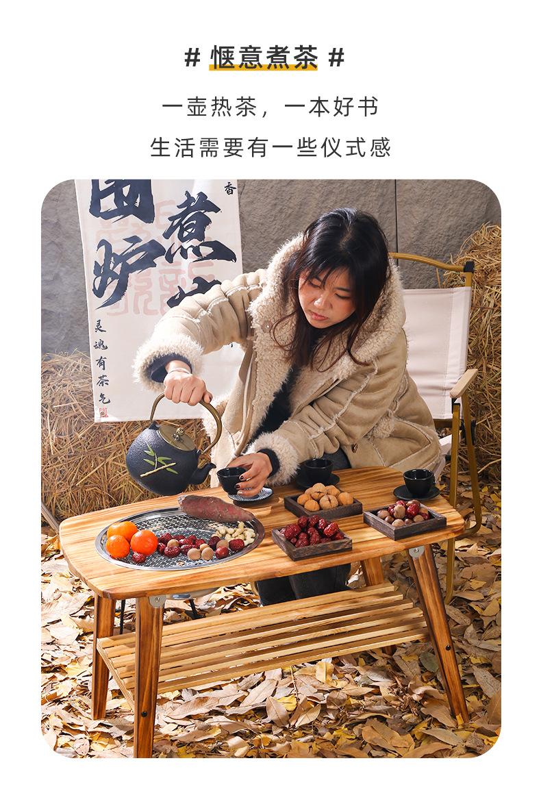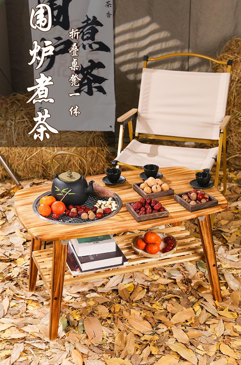 Estufa de escritorio de madera maciza multifuncional para exteriores, plegable, con parrilla de almacenamiento, para barbacoa, para acampar, mesa de té hirviendo