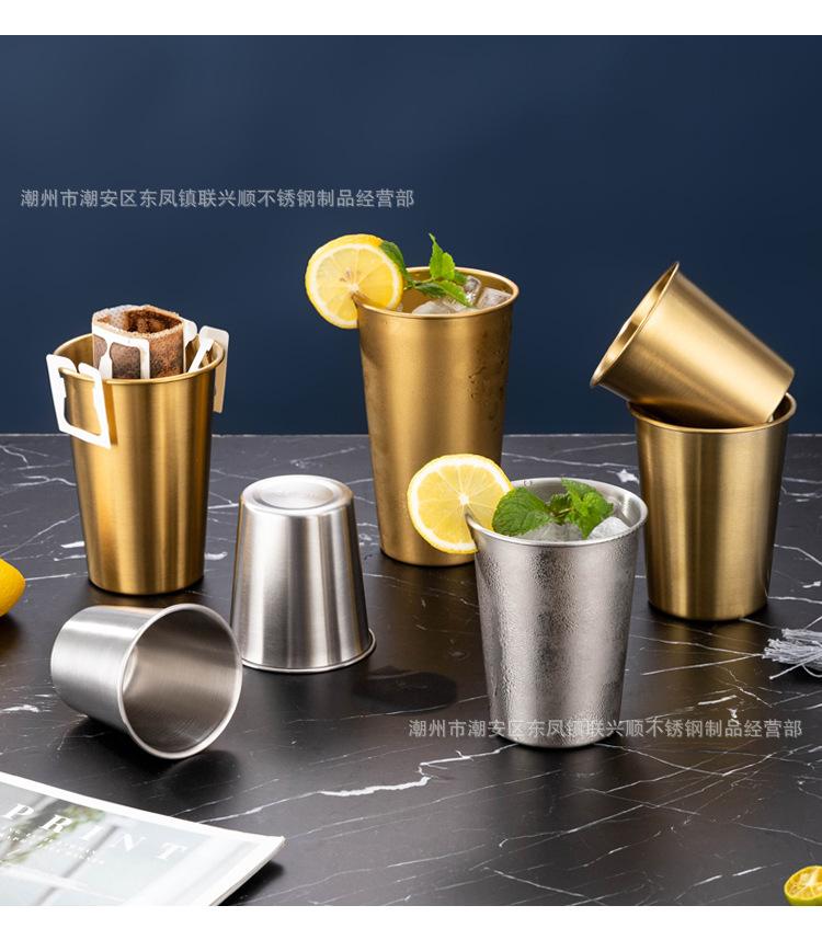 Taza de agua de acero inoxidable 304 transfronteriza, taza de cerveza rizada de una sola capa, taza para acampar al aire libre, taza comercial para bebidas frías, taza de café