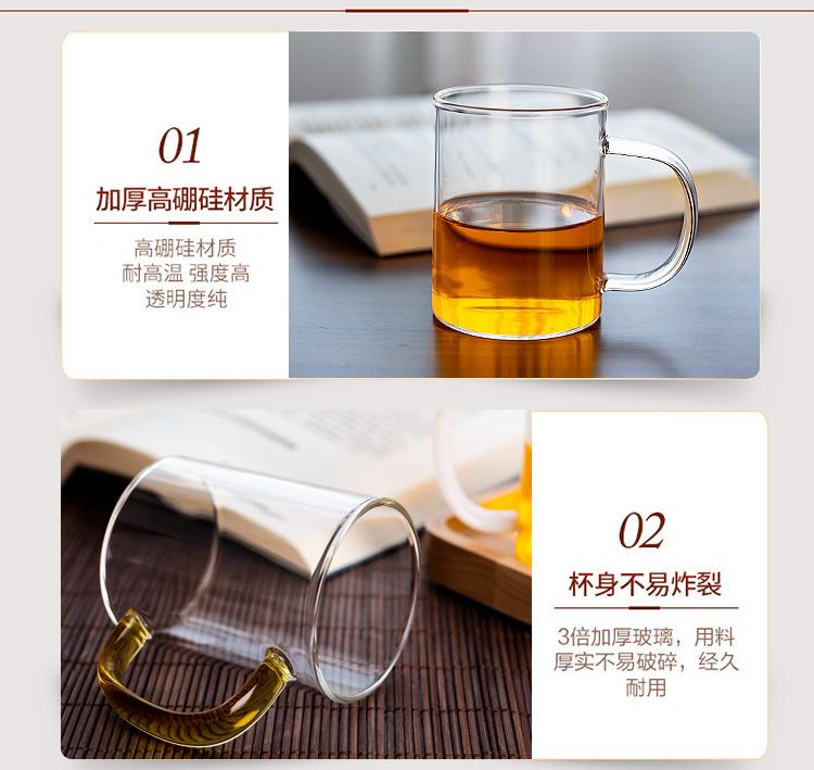 Taza de Vidrio Grueso Resistente al Calor con Asa Taza de Vidrio Vaso para Agua Taza para Té Verde Taza para Té Hogar Oficina Resistencia a Altas Temperaturas