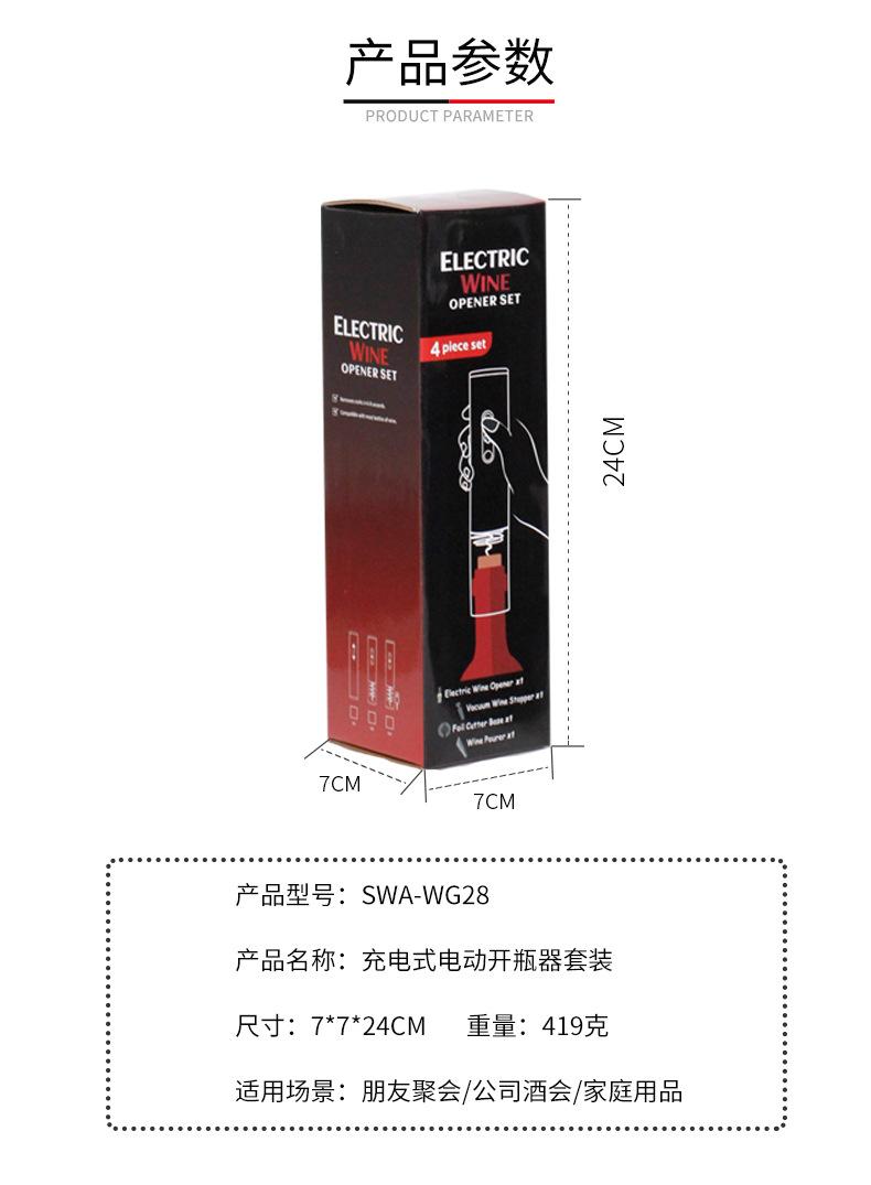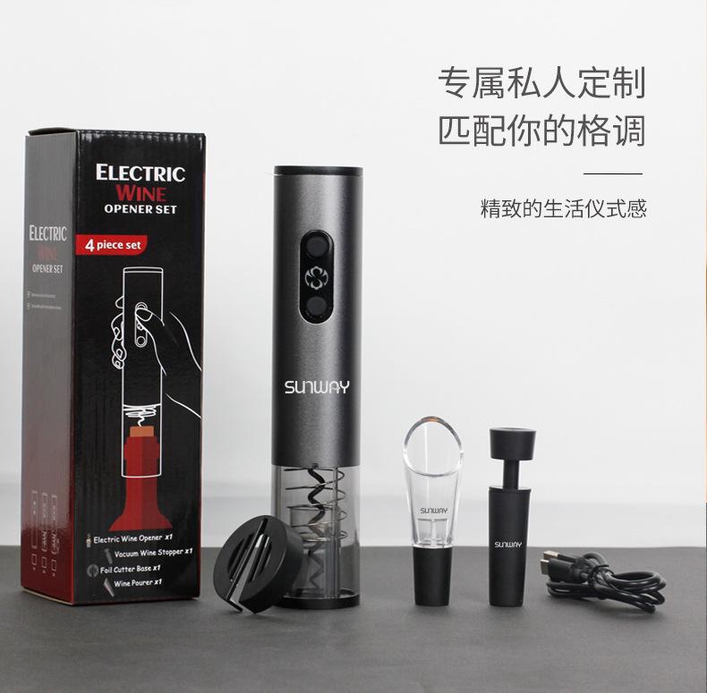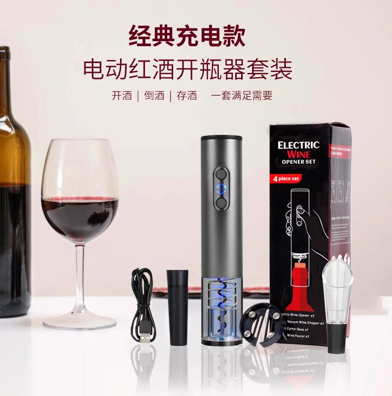 【Nombre del Producto】Abridor de Botellas Eléctrico Recargable Estilo Metal Juego de Cuatro Piezas Embalaje en Caja de Color
