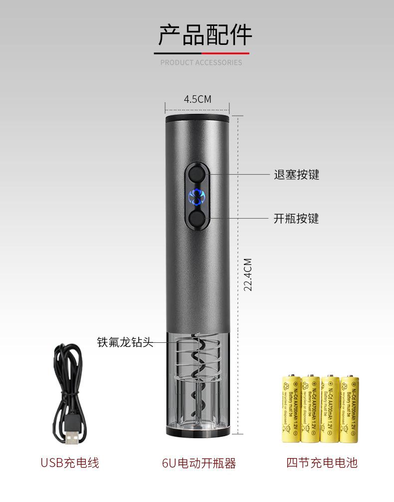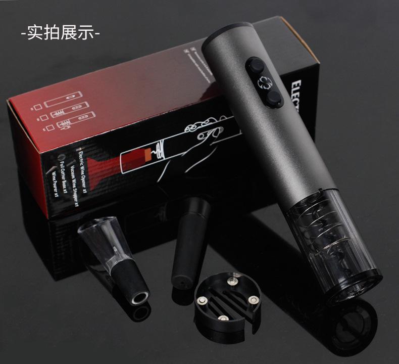 【Nombre del producto】Abridor de botellas eléctrico a pilas secas estilo metal Juego de cuatro piezas Caja de color