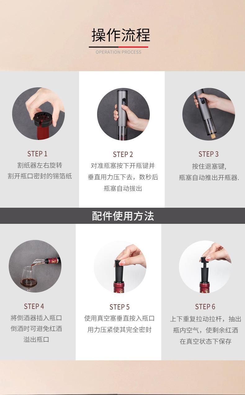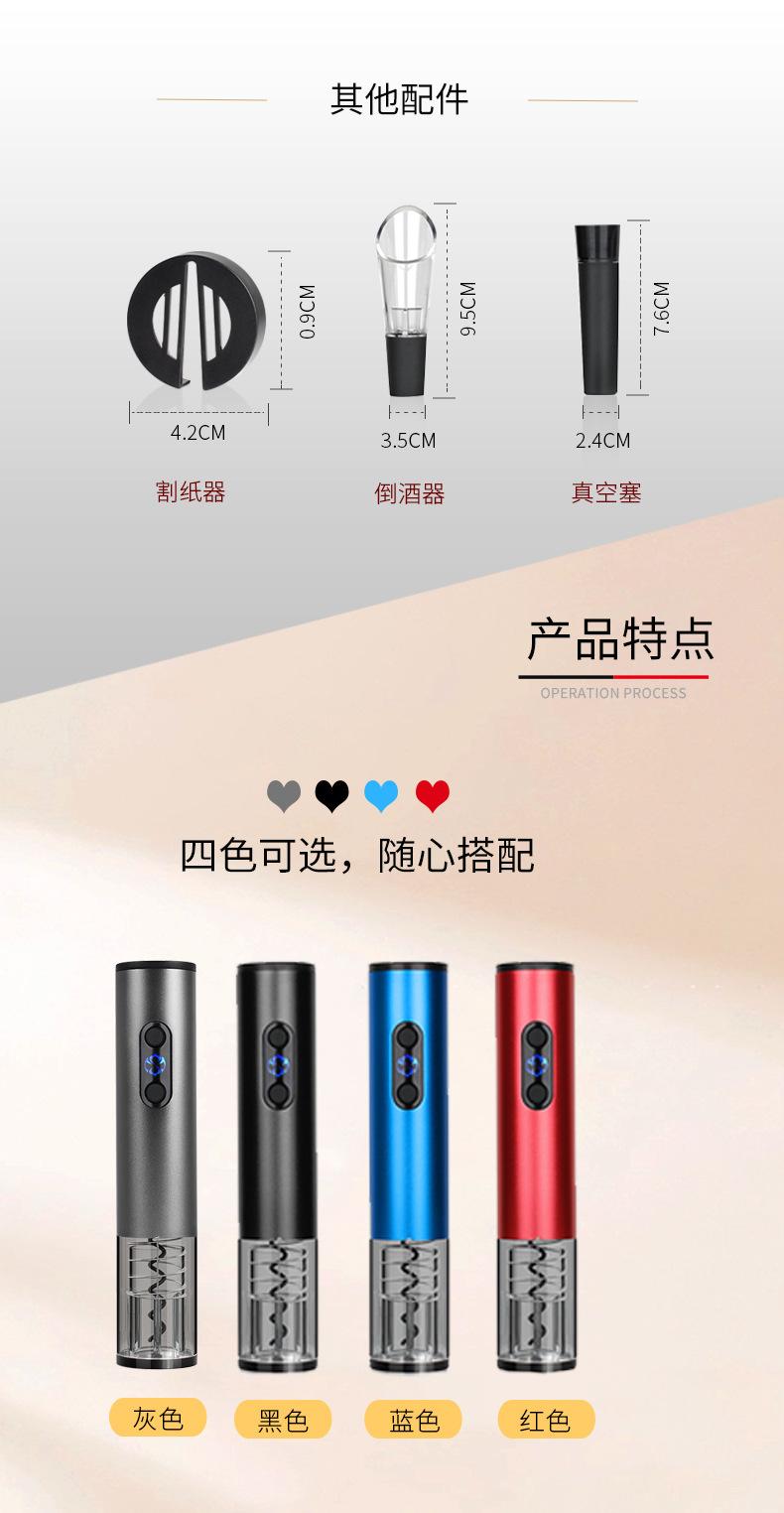 【Combinación de Accesorios】Abrebotellas Eléctrico a Batería C006+Tapón de Vacío VS04R+Vertedor de Vino WP01+Cortacápsulas FC04+Manual en Chino e Inglés+Caja de Color