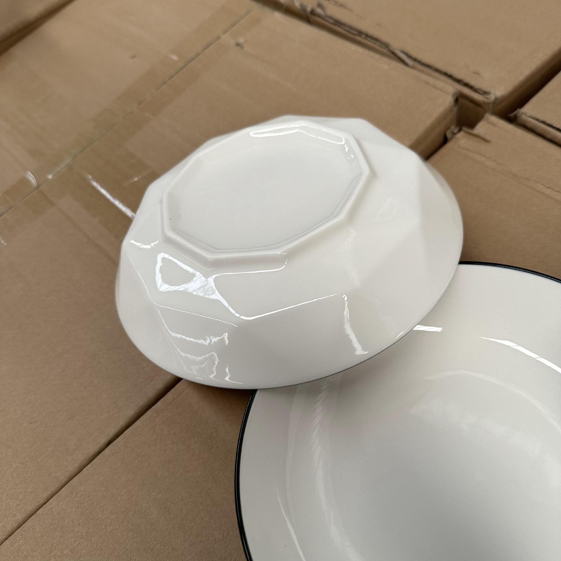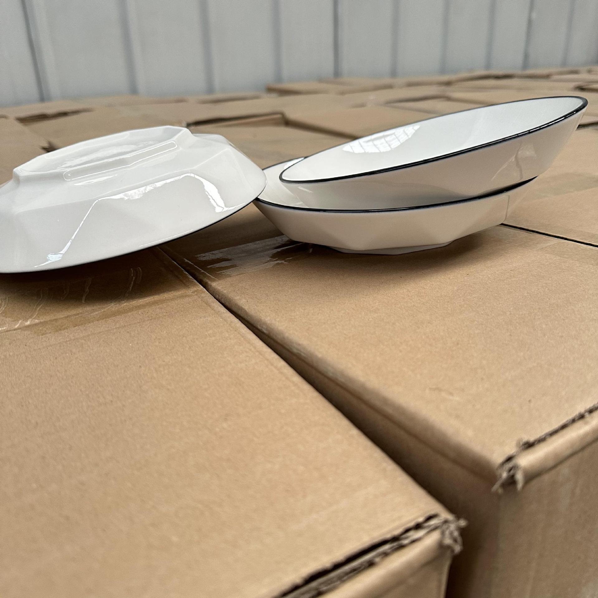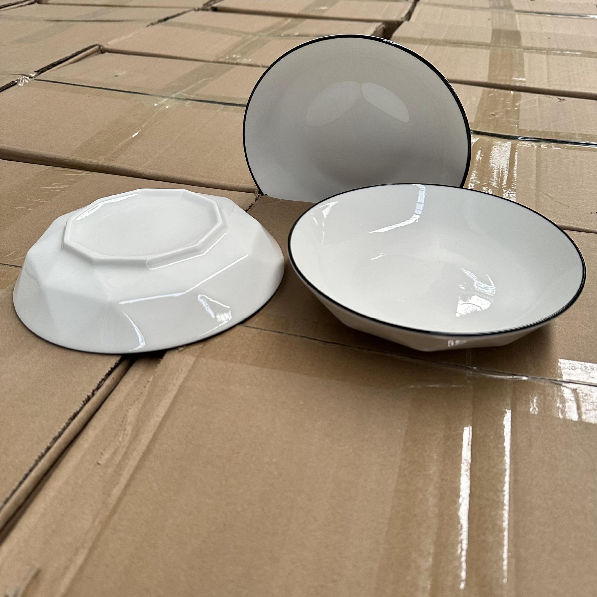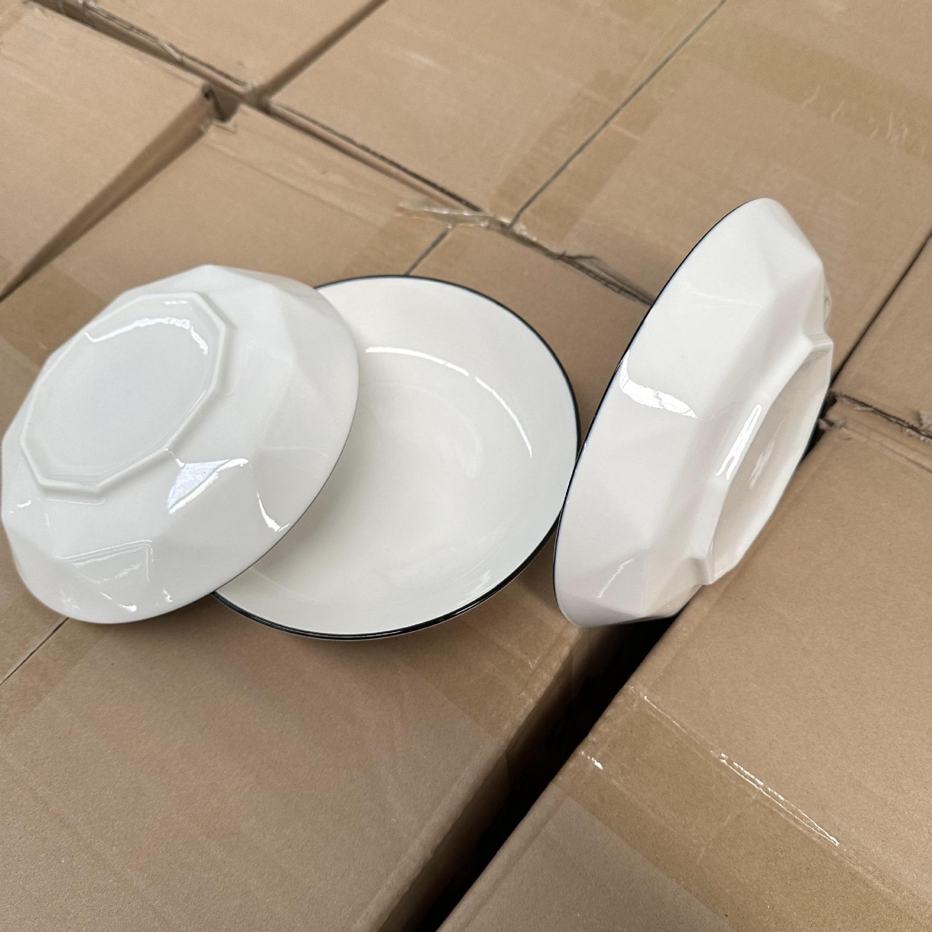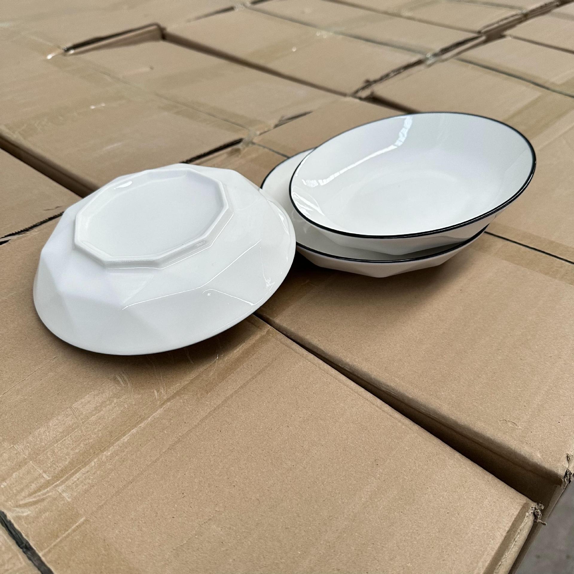 Cerámica al por mayor plato de diamante de 7 pulgadas plato de cerámica borde negro blanco puro plato de diamante puesto de cerámica para el hogar tienda de dos yuanes