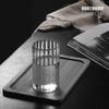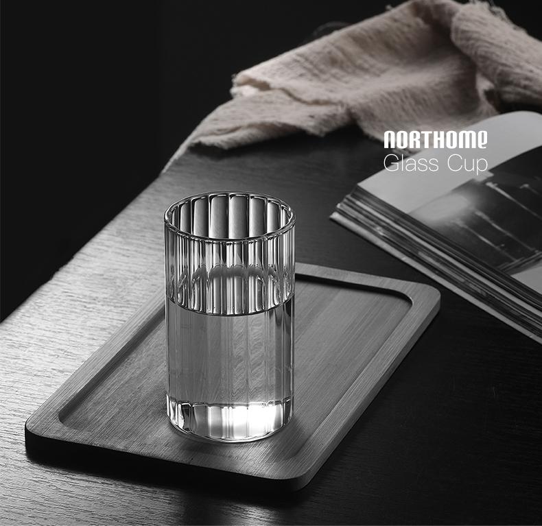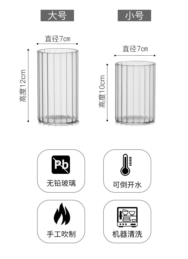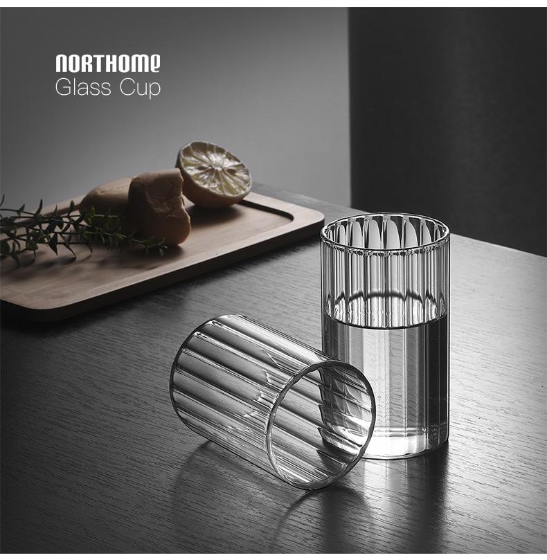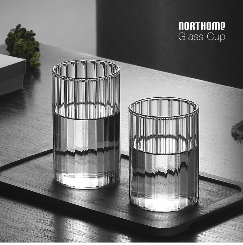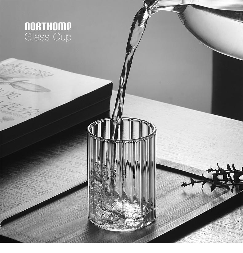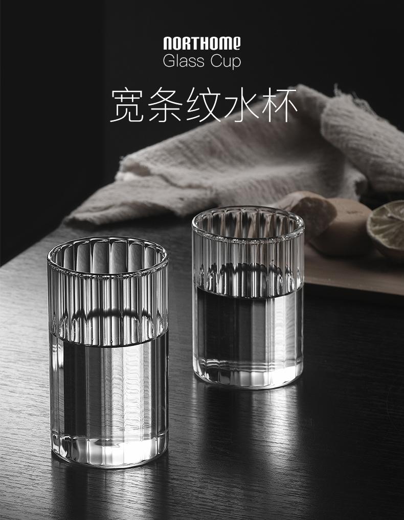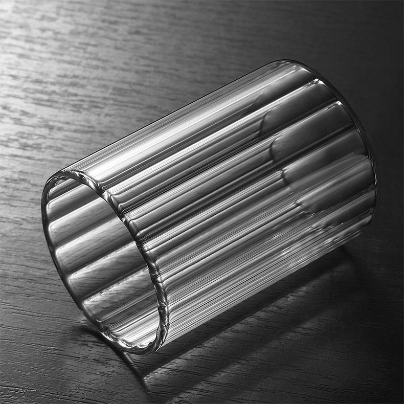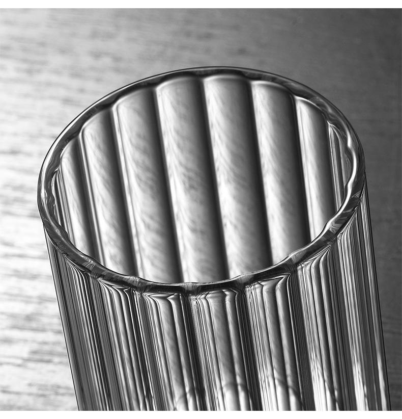 Vaso de agua de vidrio transparente de borosilicato resistente a altas temperaturas con franjas anchas, ideal para el hogar, para jugos y vino.