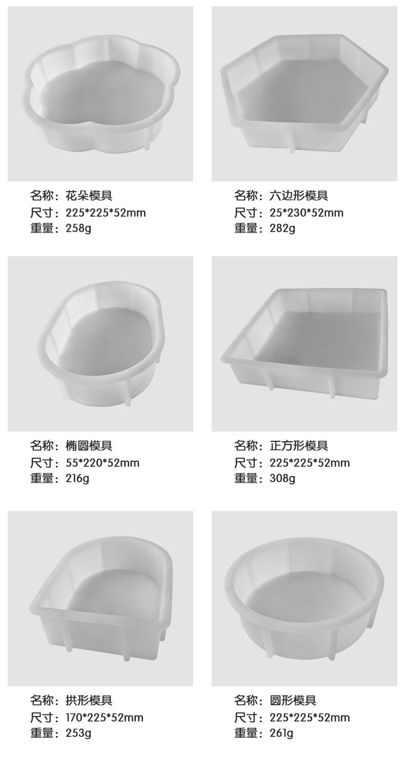 Large square 225*225mm, Large rectangular 225*155mm, Large round 225*225mm, Large hexagonal 255*230mm, Large l...
