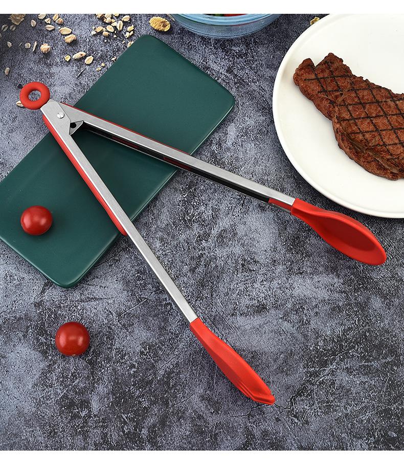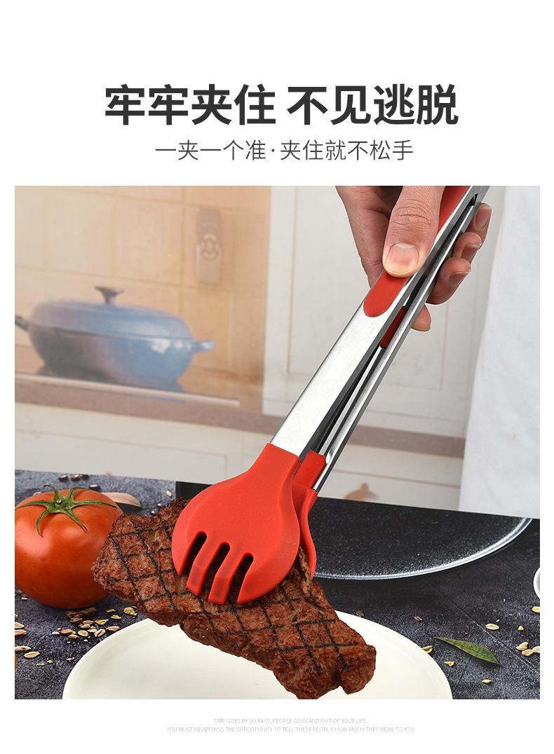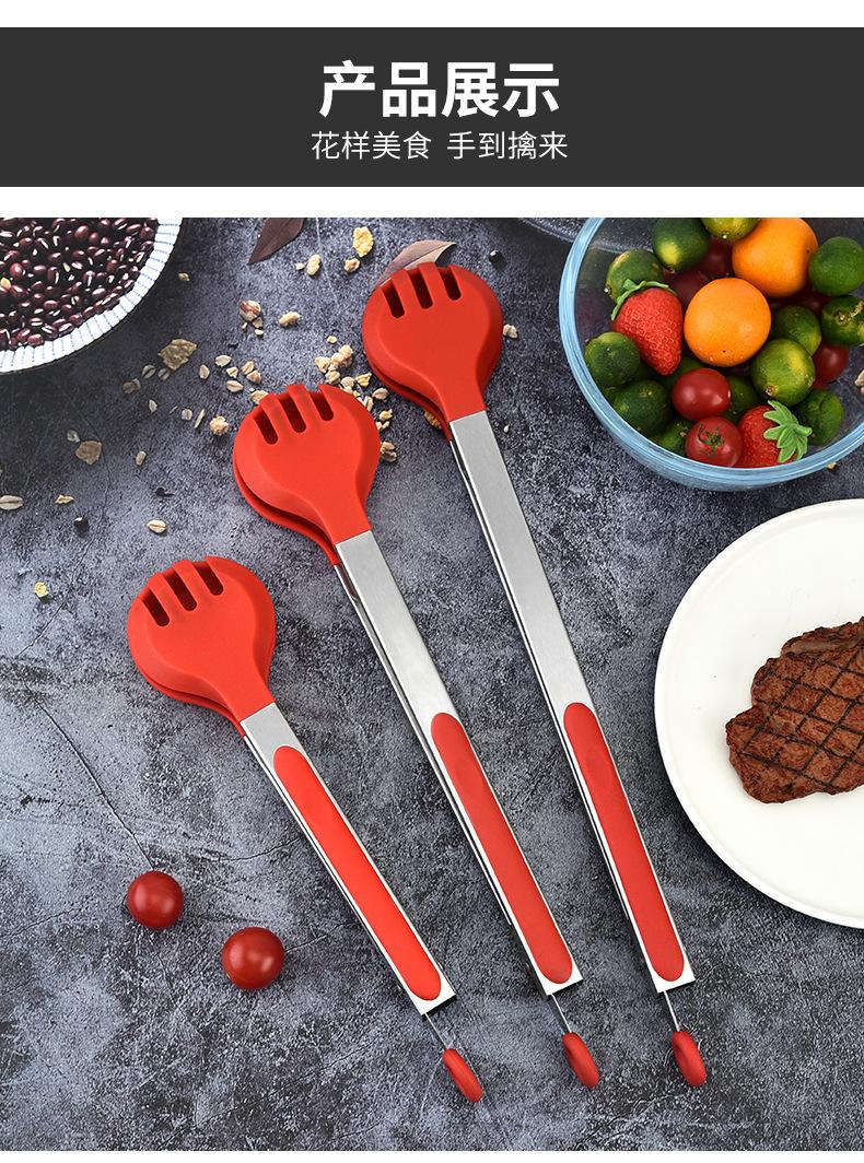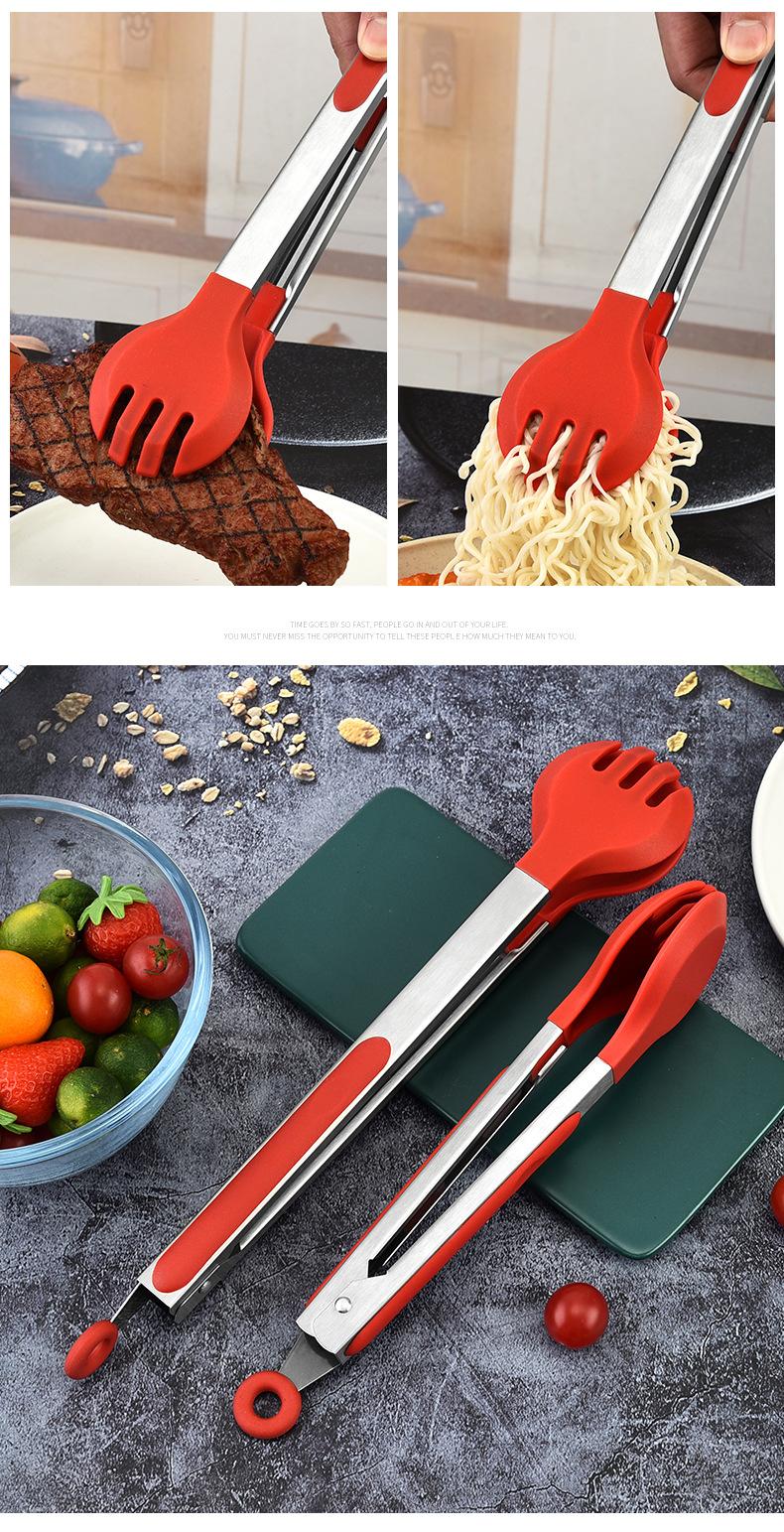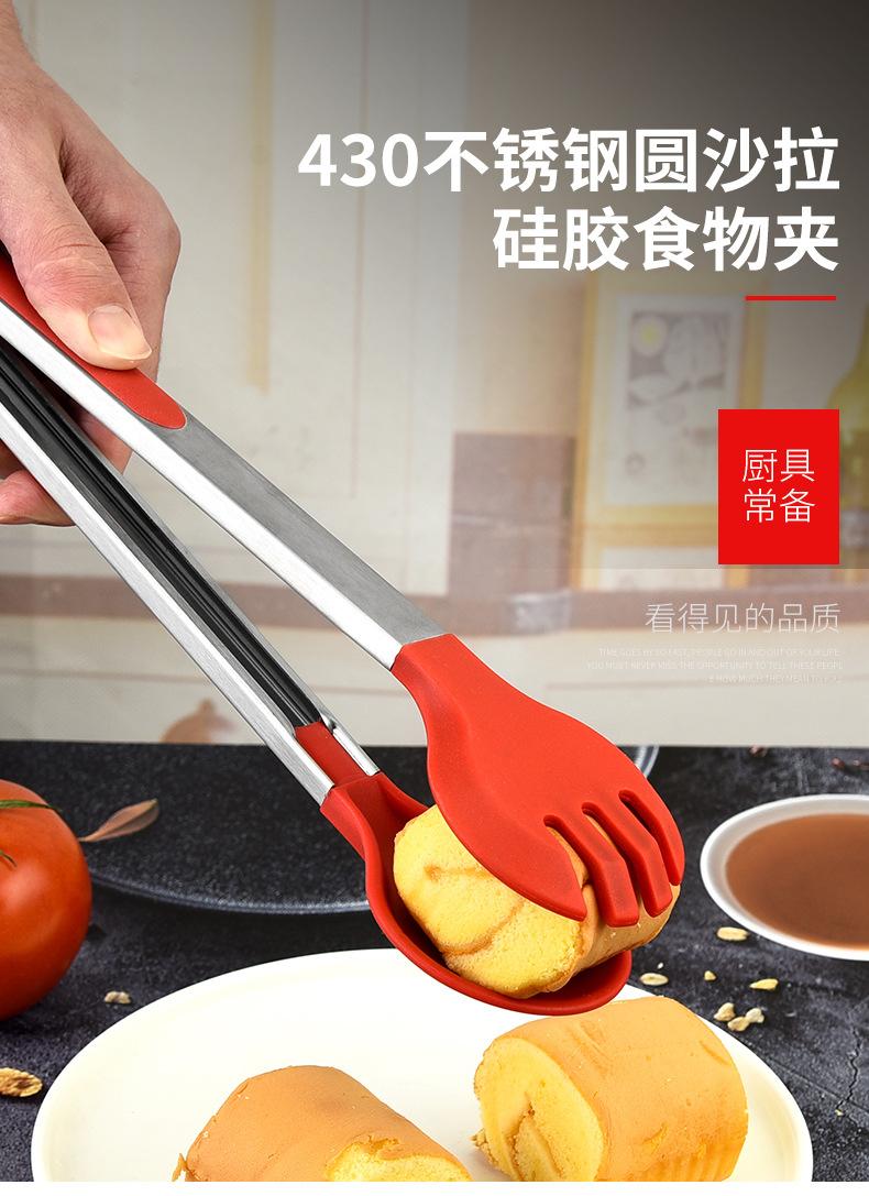 Pinza de silicona para alimentos con cabeza redonda, pinza para ensalada, pan, filete, pescado frito, pinza para barbacoa de acero inoxidable, pinza para alimentos