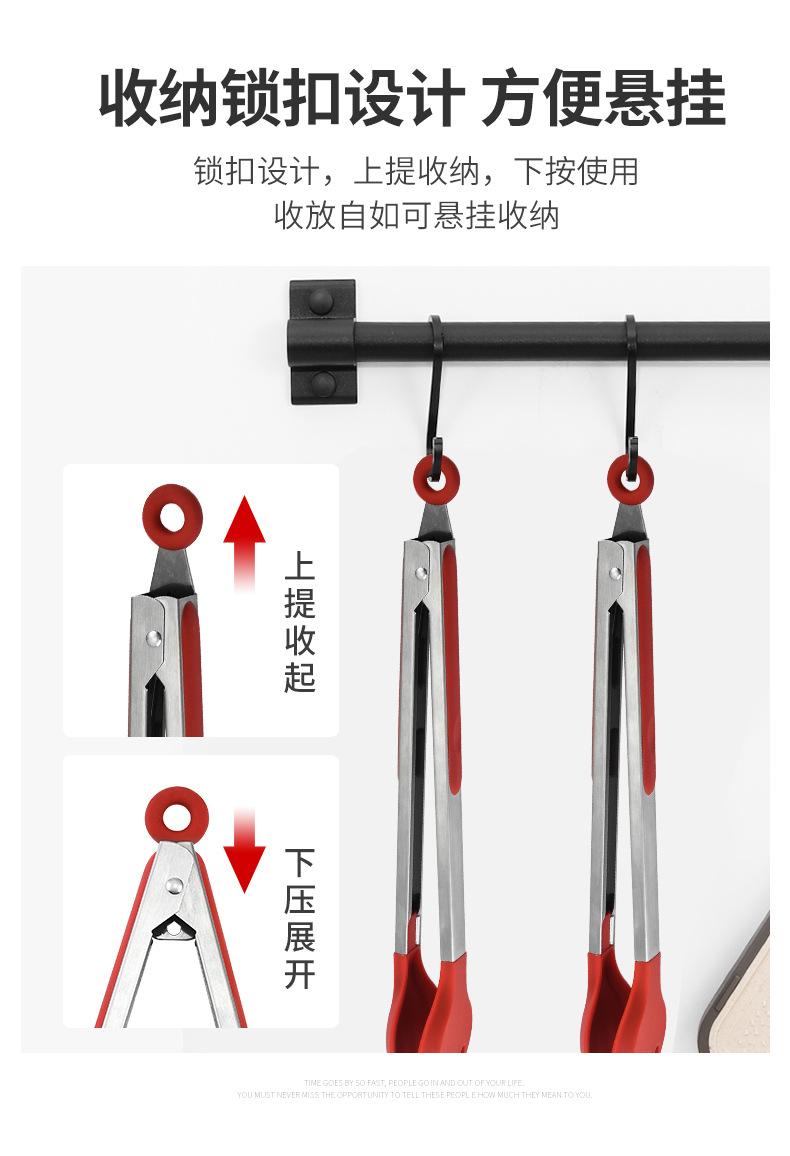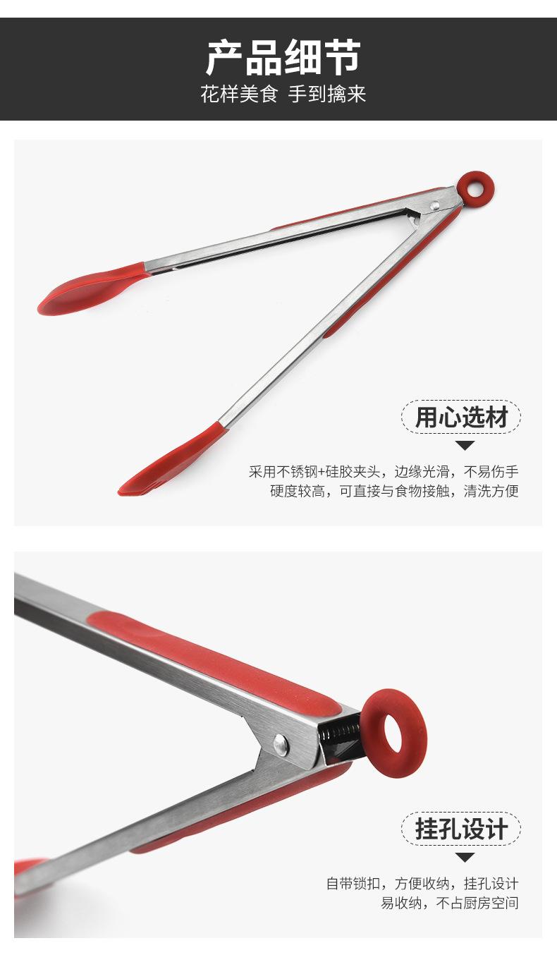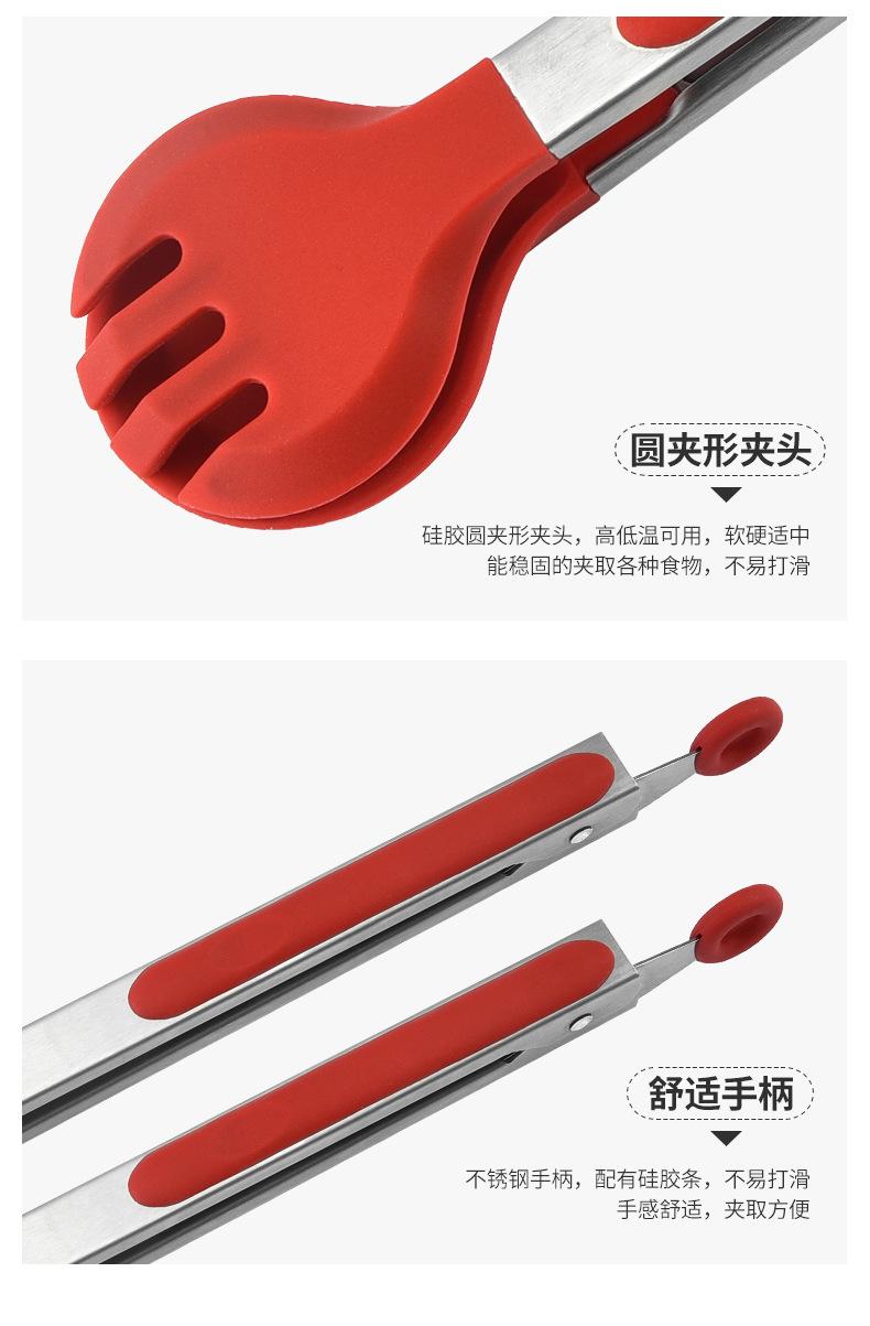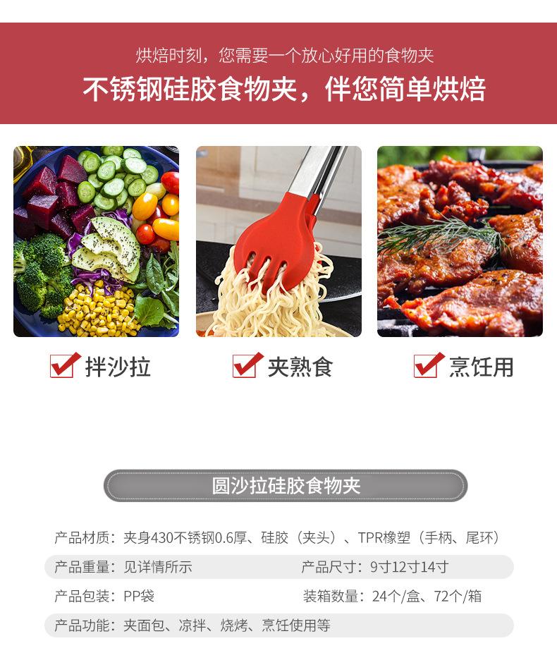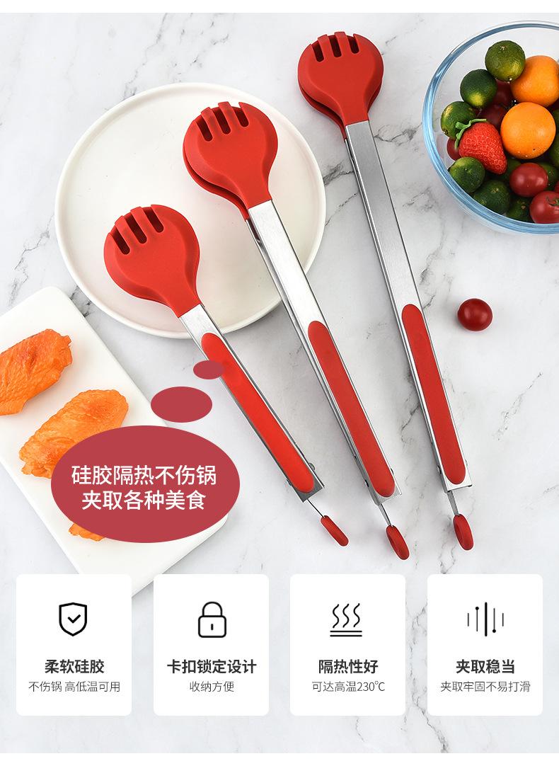 Pinza de silicona para alimentos con cabeza redonda, pinza para ensalada, pan, filete, pescado frito, pinza para barbacoa de acero inoxidable, pinza para alimentos
