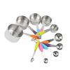 Venta al por mayor de fábrica juego de cucharas medidoras de acero inoxidable de 10 piezas para cocina y repostería, cucharas medidoras con mango redondo de silicona, tazas medidoras