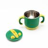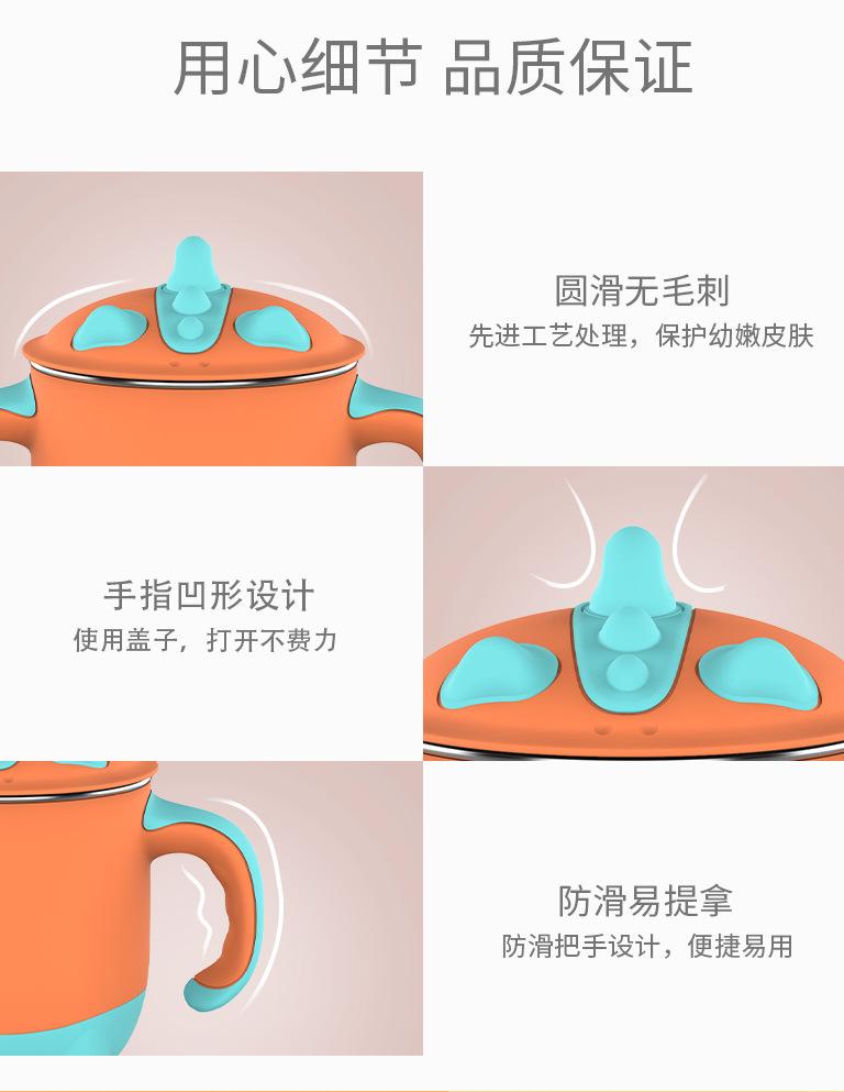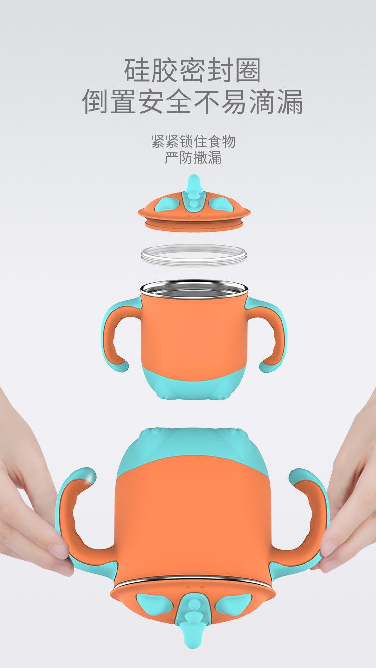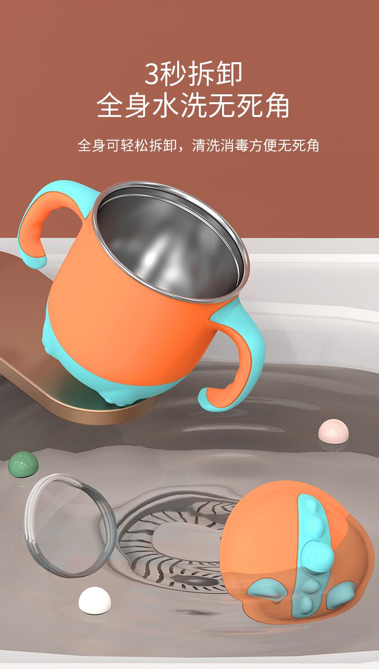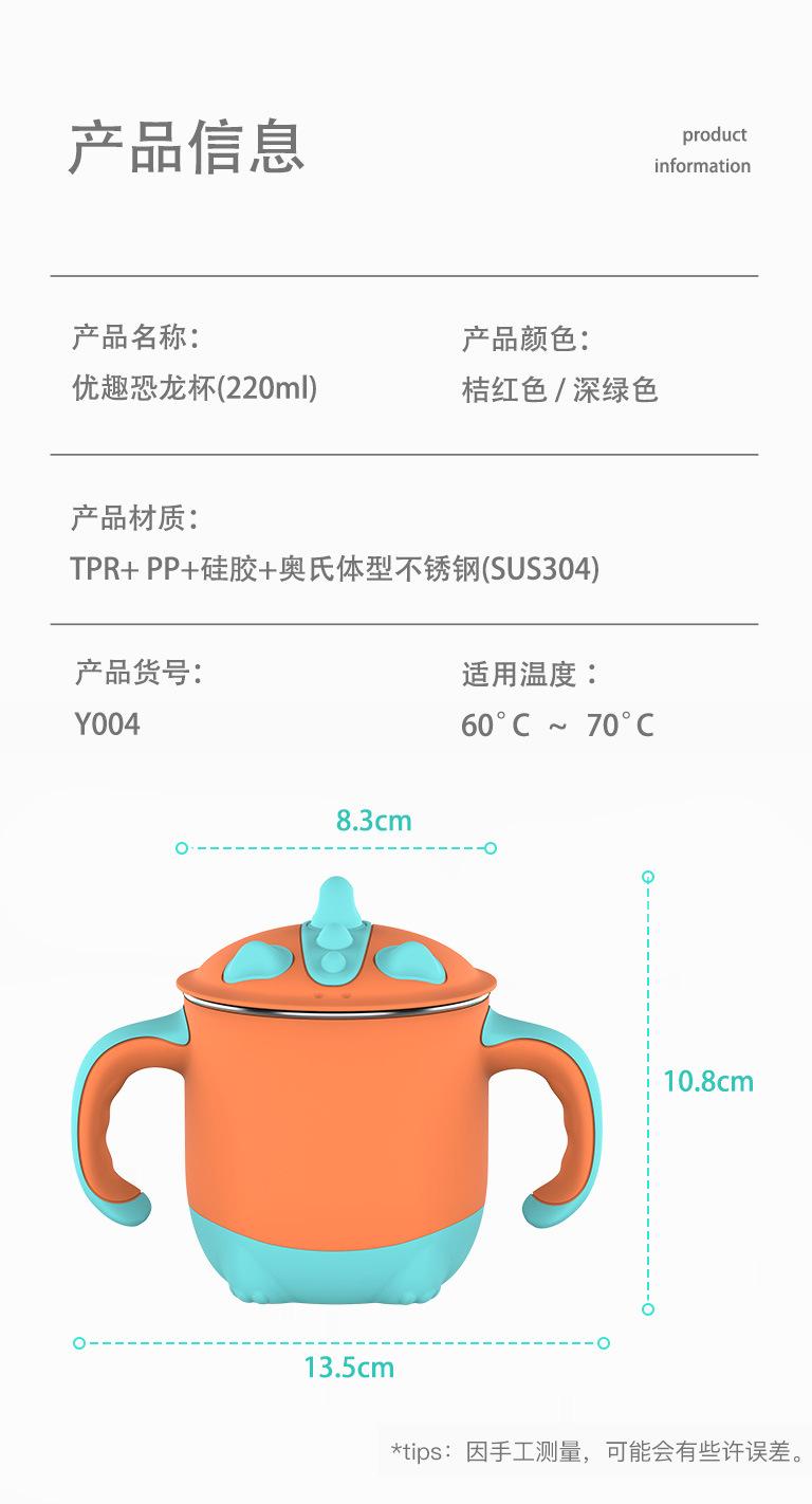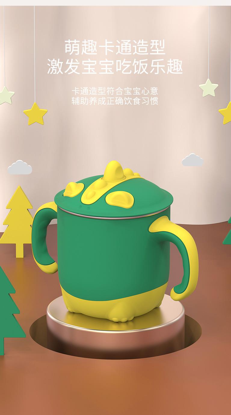 Taza de leche con aislamiento para niños de acero inoxidable 304, taza de doble oreja para bebé, taza de silicona para beber con asa de dinosaurio para bebés