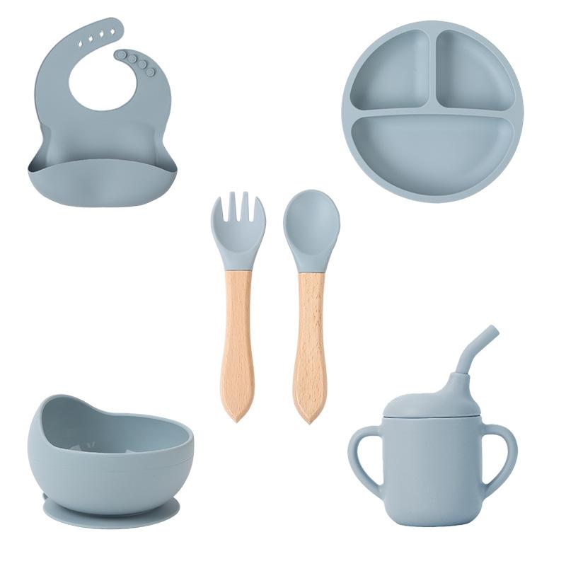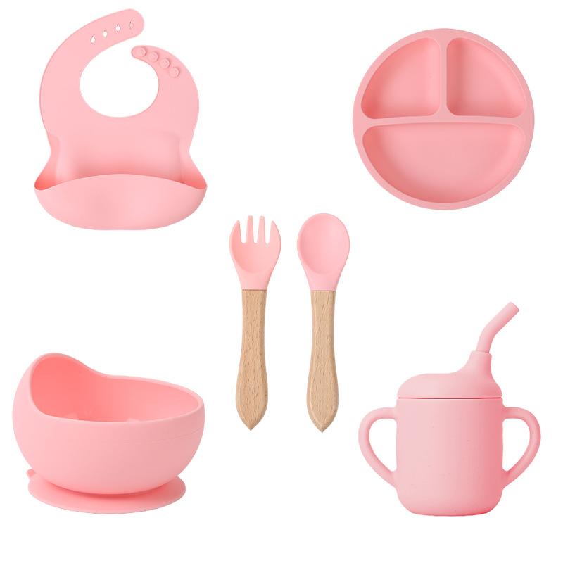 Vajilla infantil, productos para bebés, cuenco de silicona, tenedor, cuchara, cuenco adicional para bebé, plato de cena, vajilla de silicona de grado alimenticio