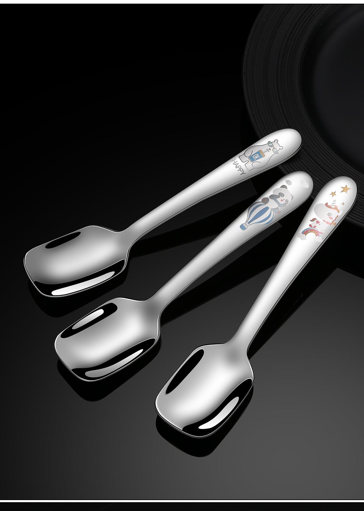 Cuchara infantil de acero inoxidable 304, tenedor para bebé, cuchara de postre para helado de aspecto alto, cuchara de cabeza cuadrada, vajilla para niños.
