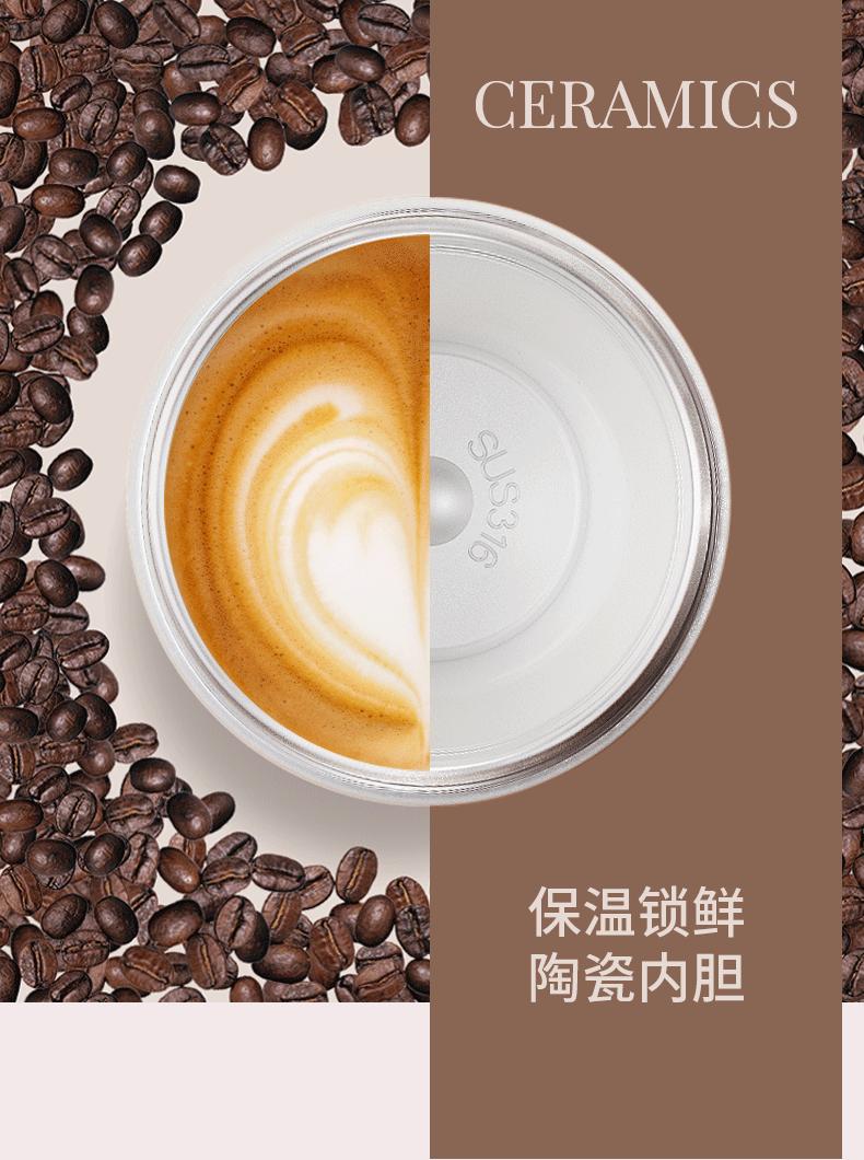 Taza de café al vacío con revestimiento de cerámica, taza de café para niña, taza de agua portátil de acero inoxidable para mujer, taza de agua fría para hombre