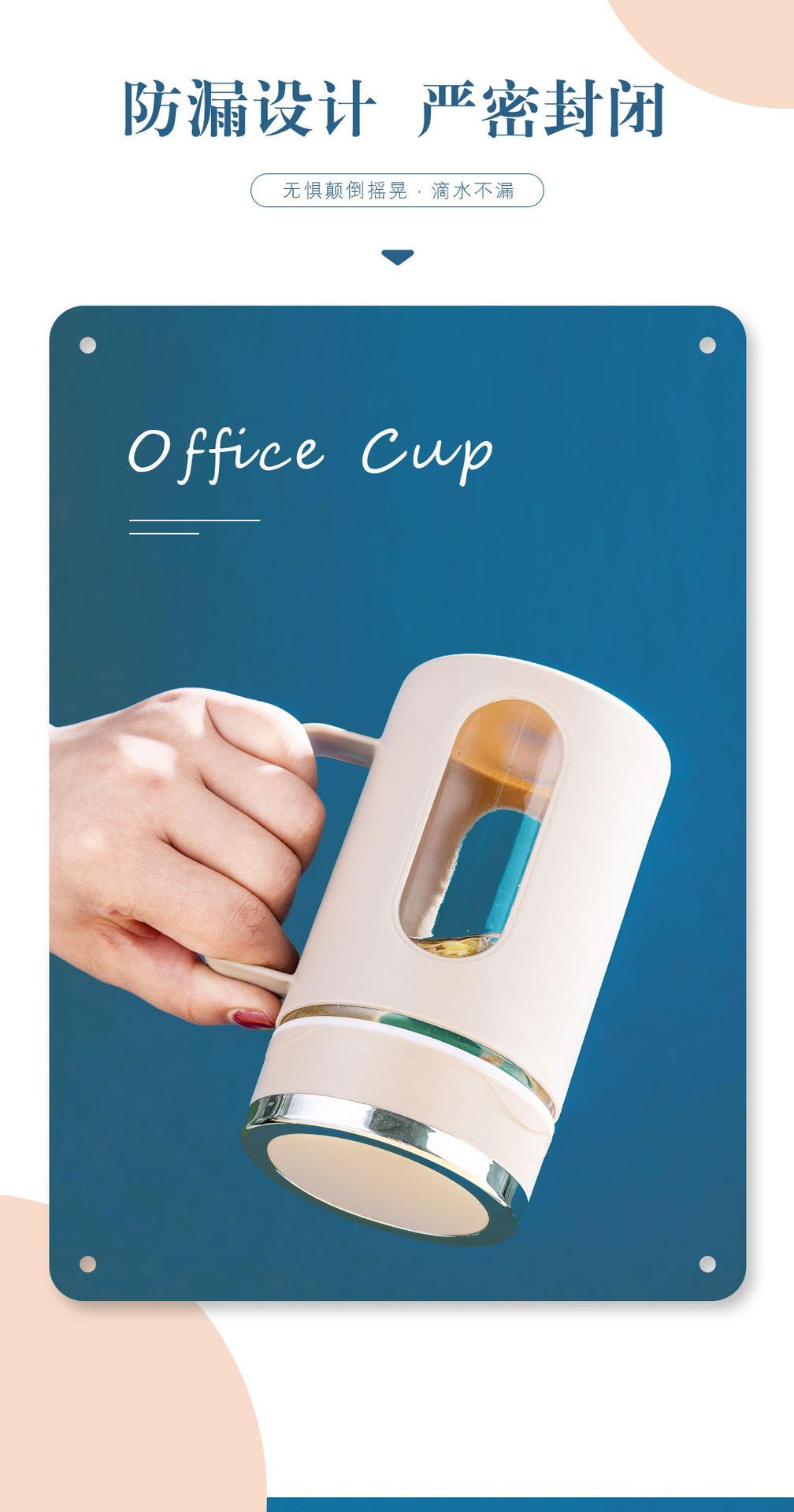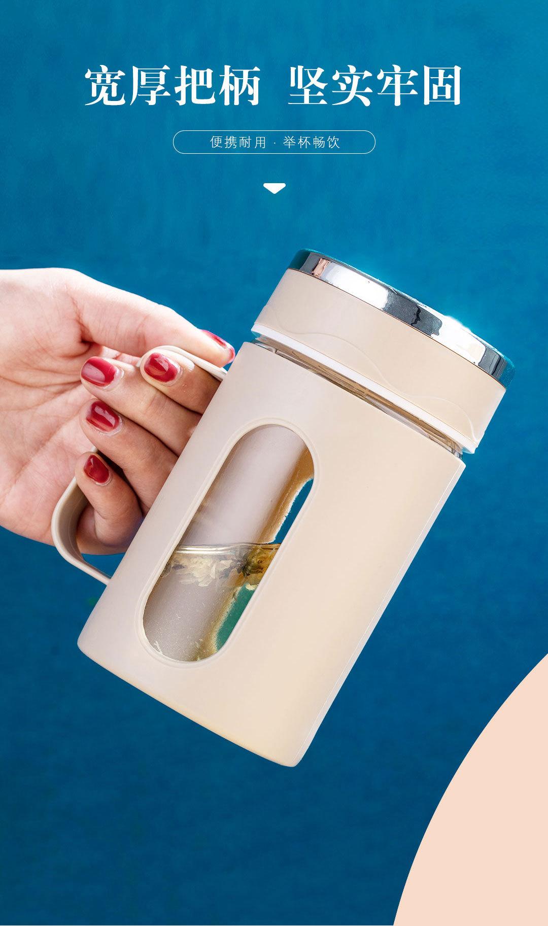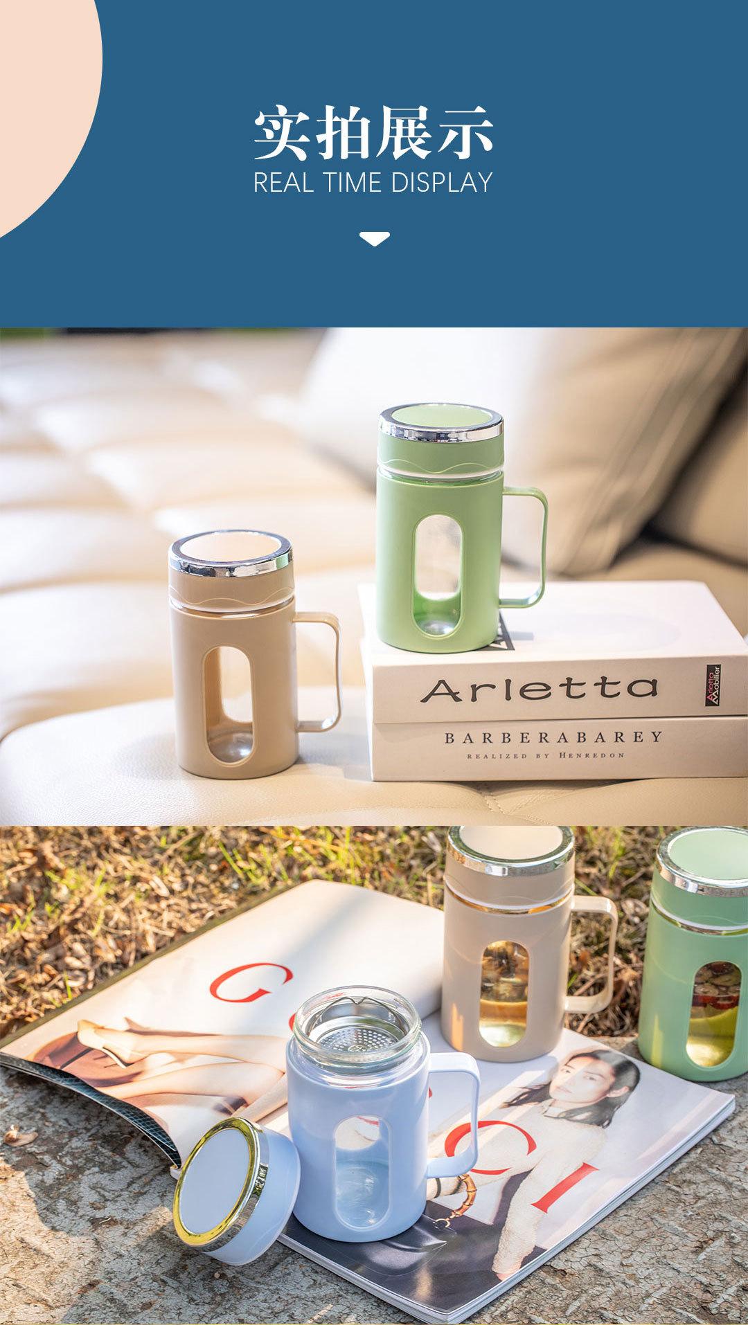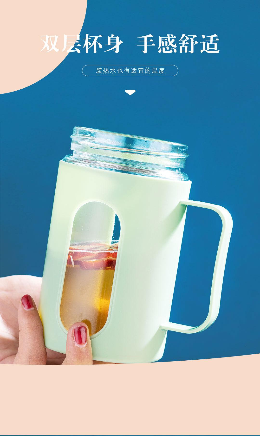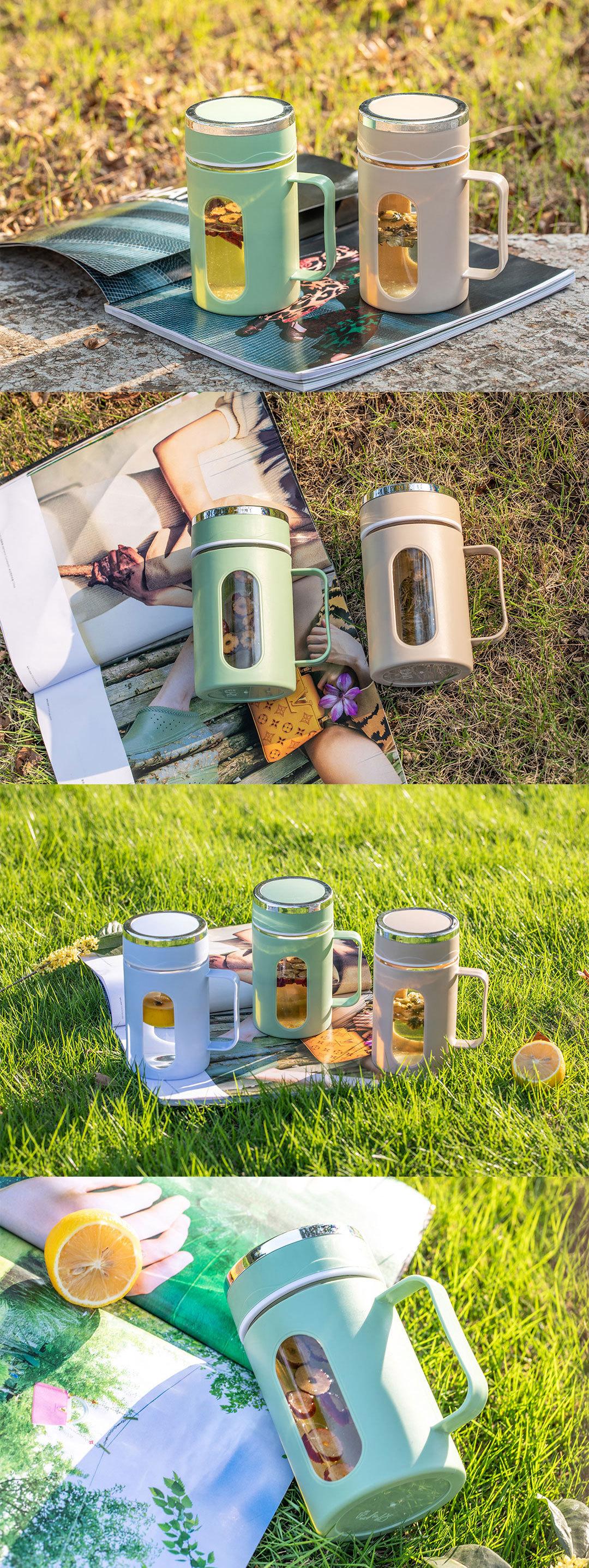 Nueva asa de oficina Taza doble capa aislamiento térmico carcasa de plástico vaso de agua de vidrio regalo té de flores impresión de logotipo de vaso de agua