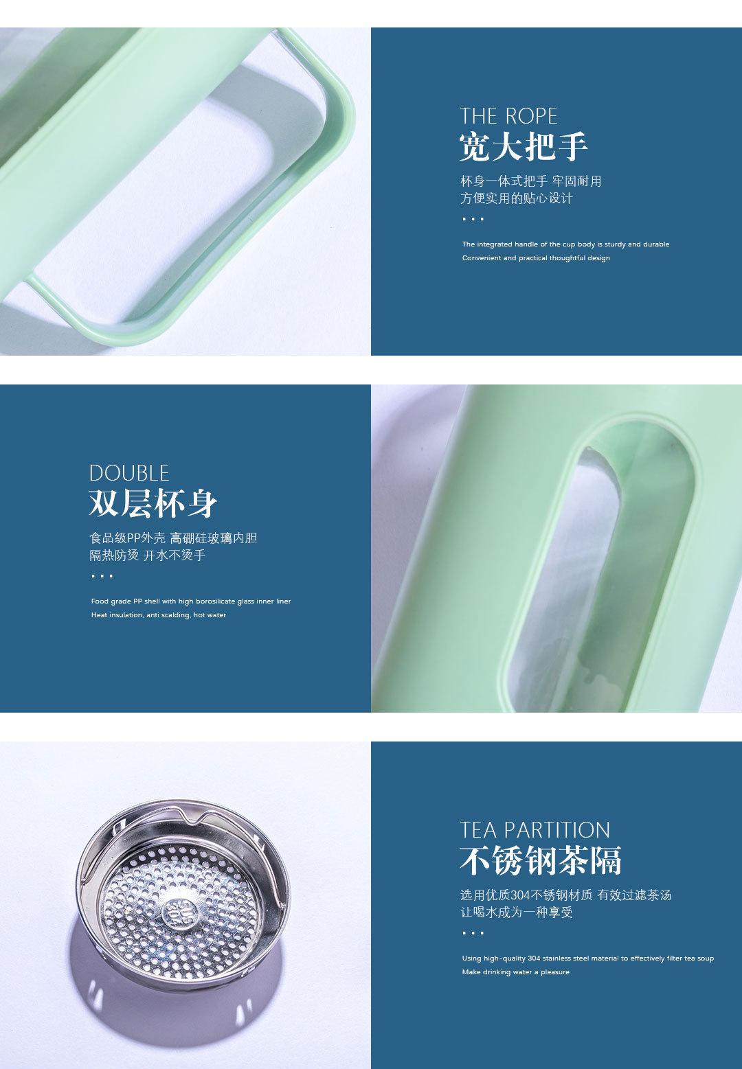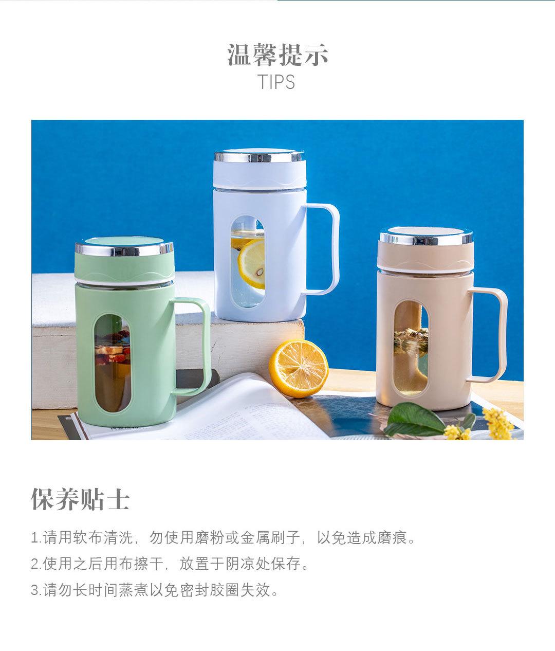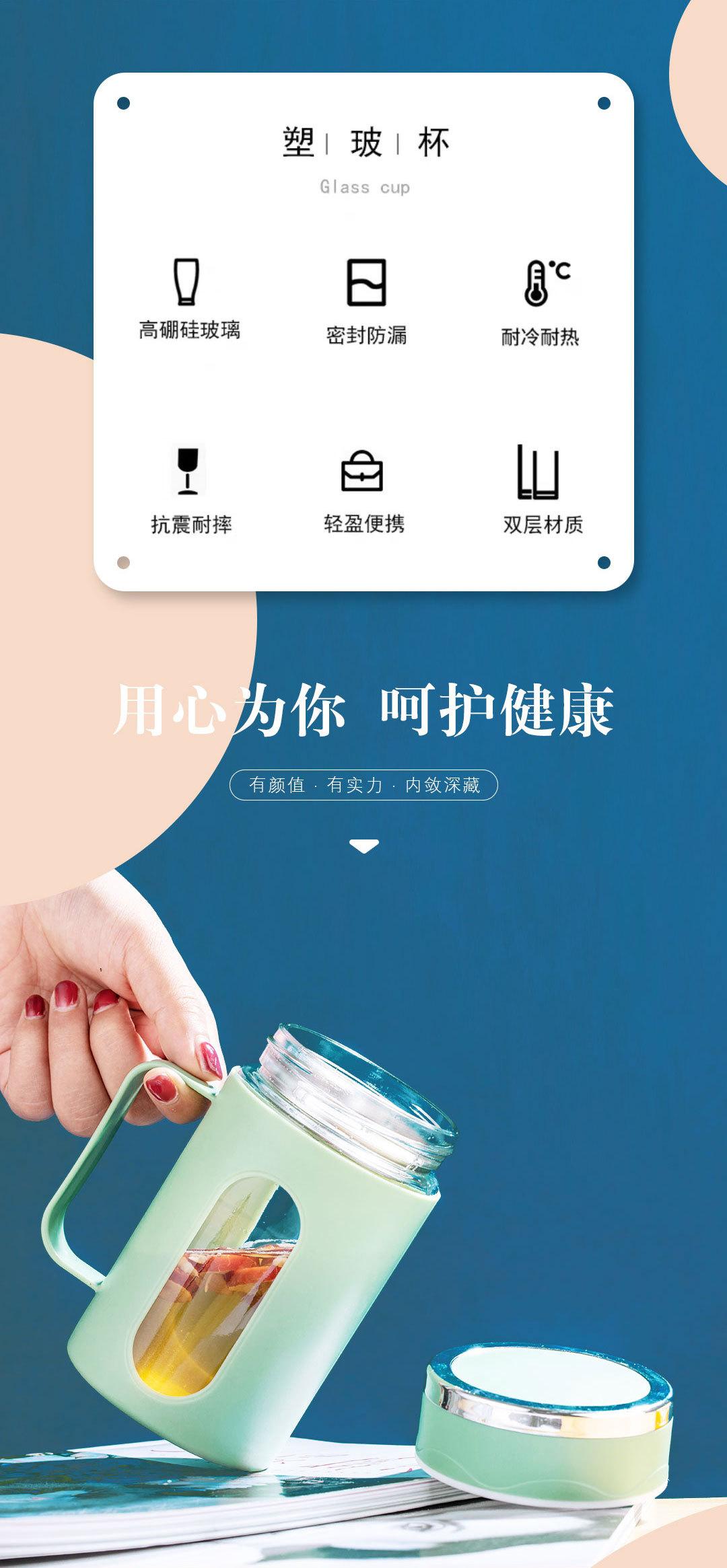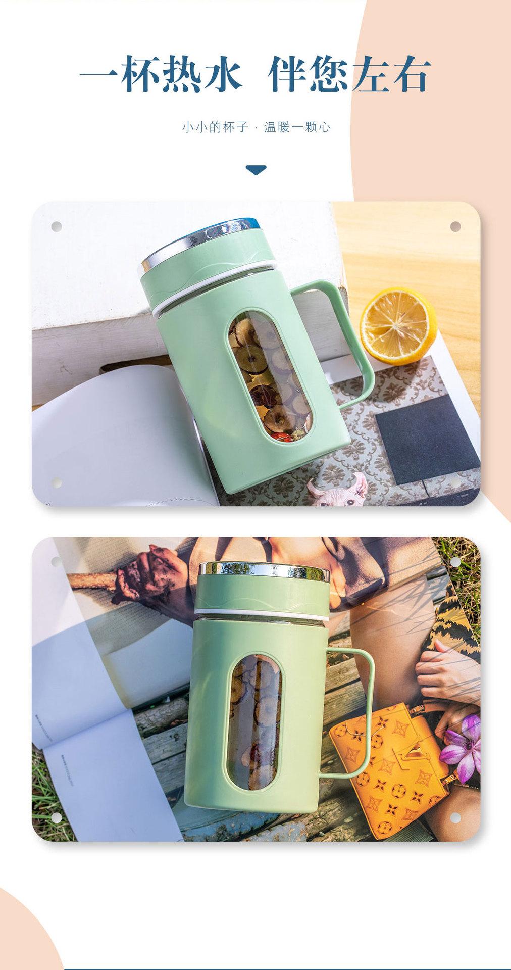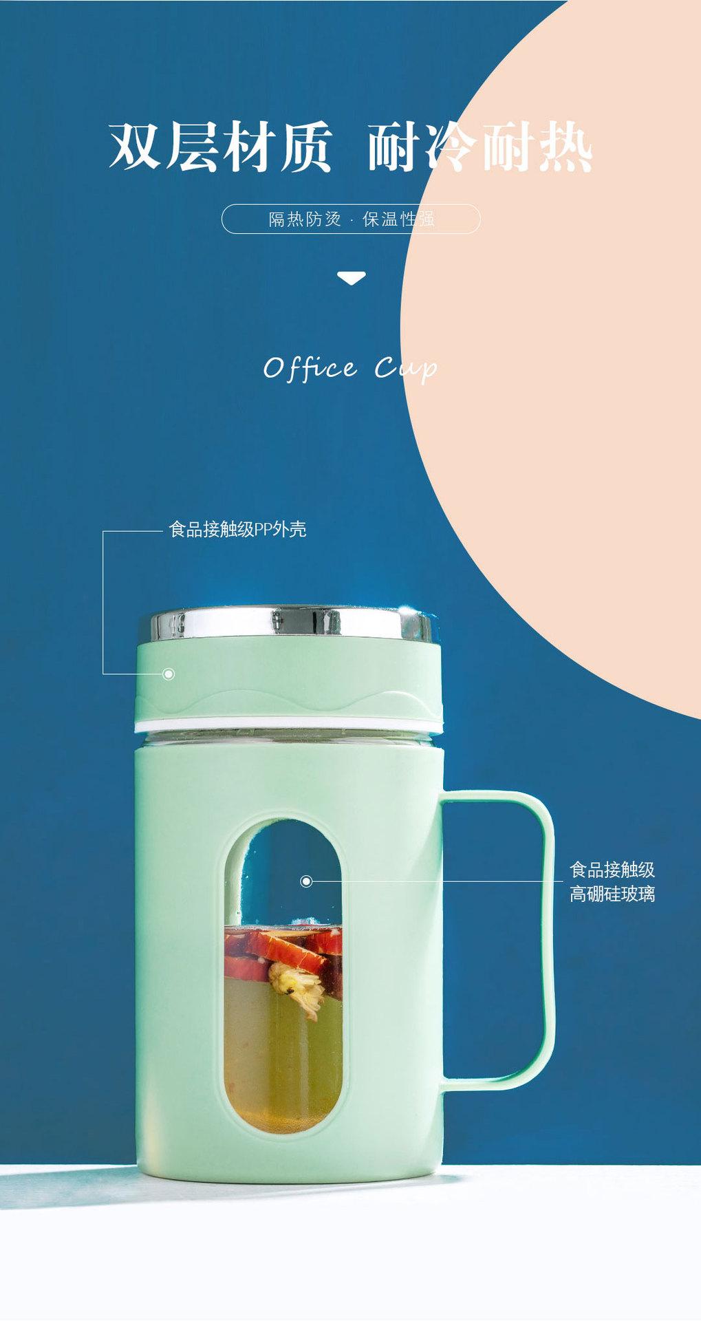 Nueva asa de oficina Taza doble capa aislamiento térmico carcasa de plástico vaso de agua de vidrio regalo té de flores impresión de logotipo de vaso de agua