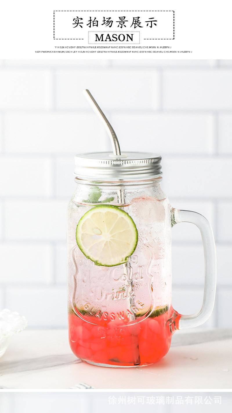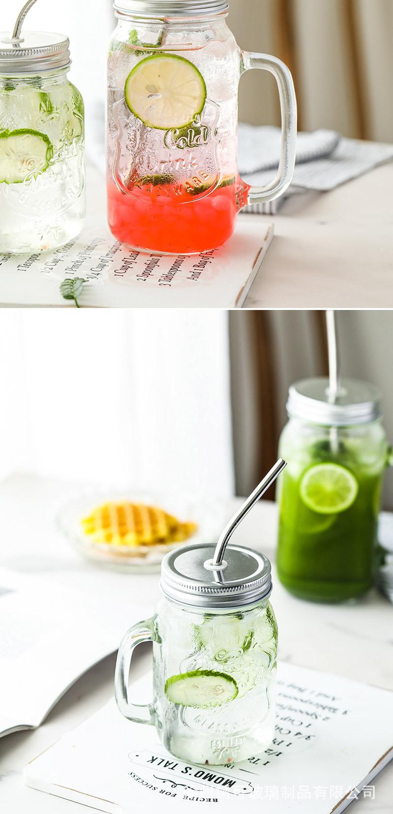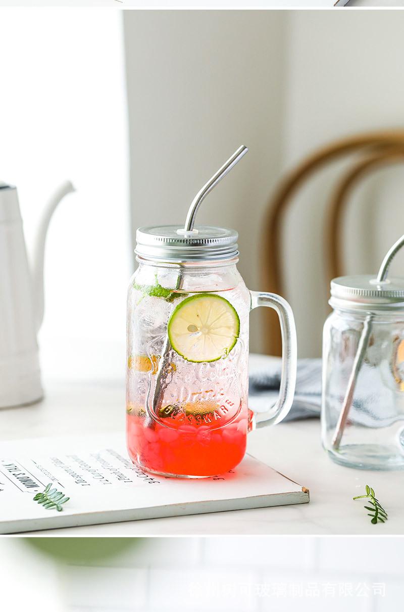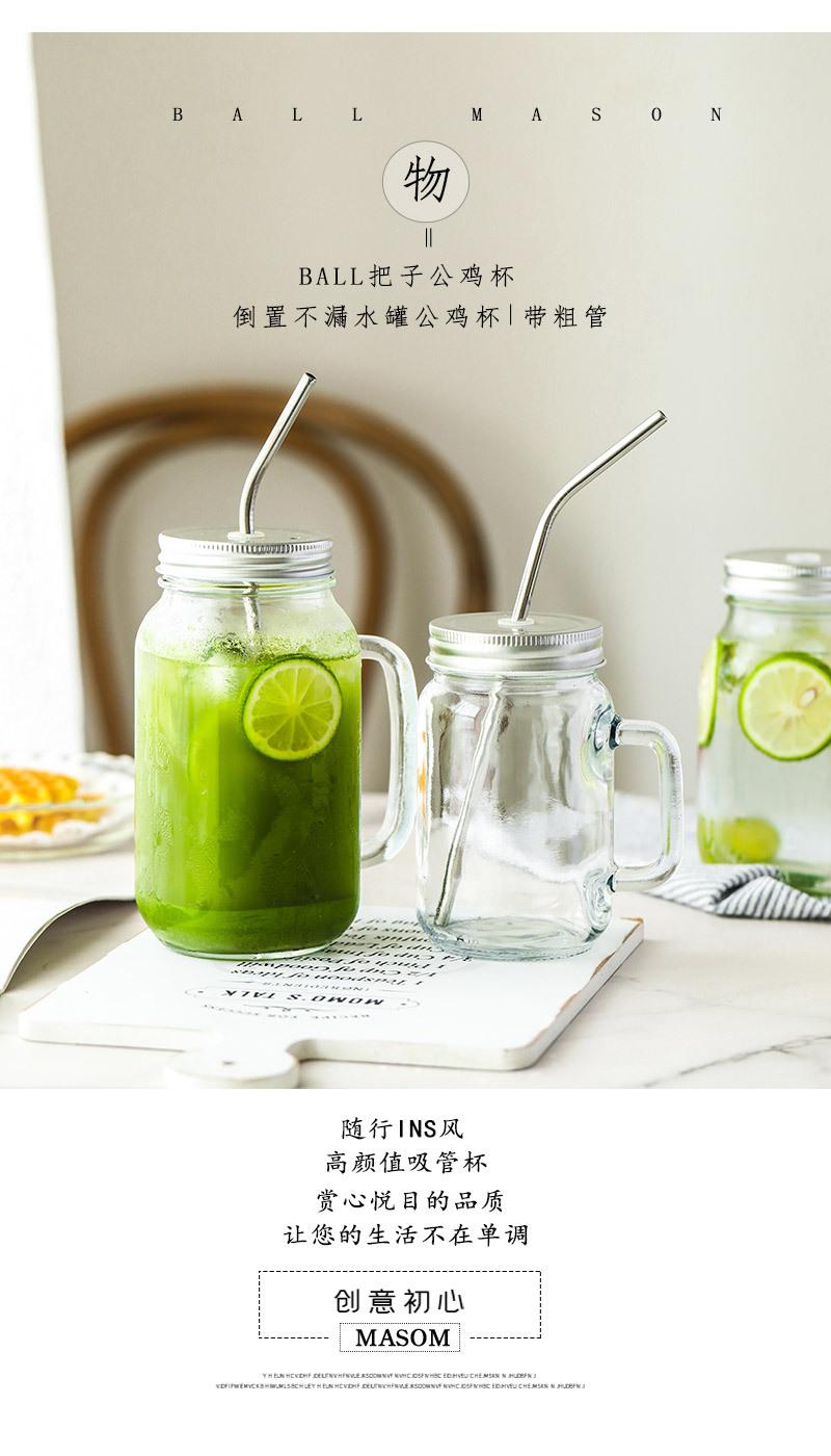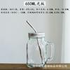 Taza de vidrio transparente de 730 ml con asa, taza de acero inoxidable con pajita para beber, taza de café, venta al por mayor de fábrica