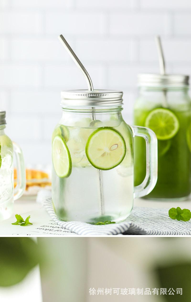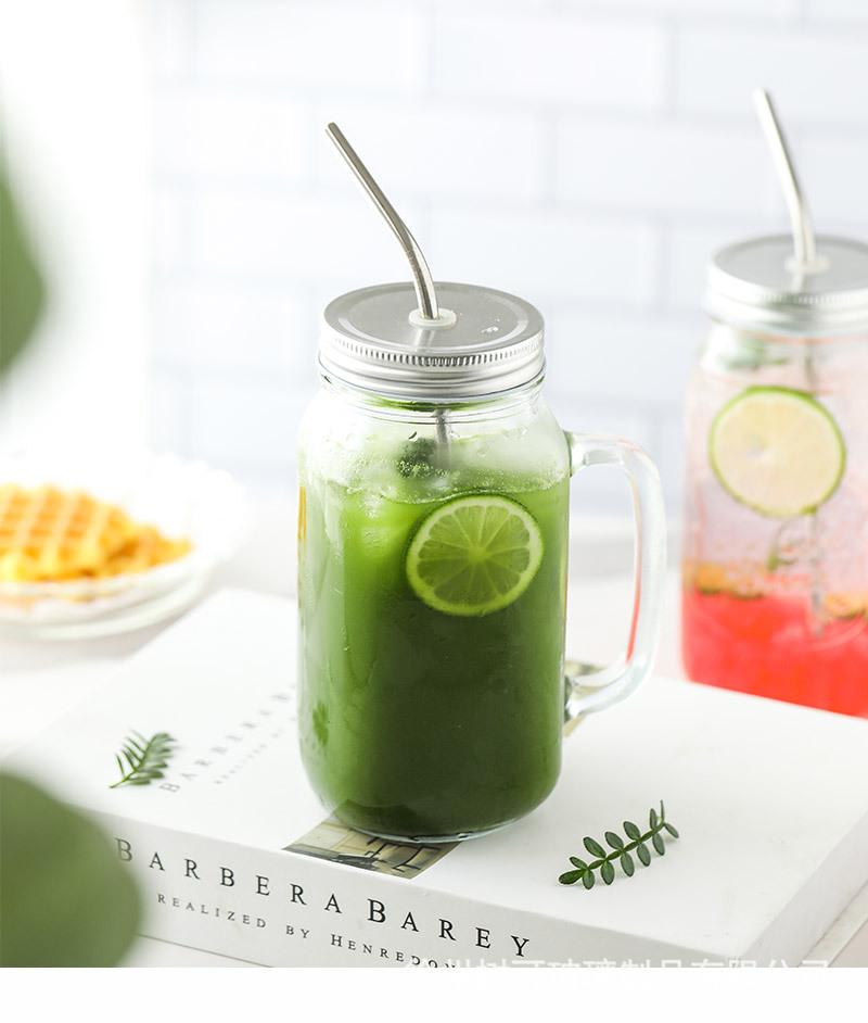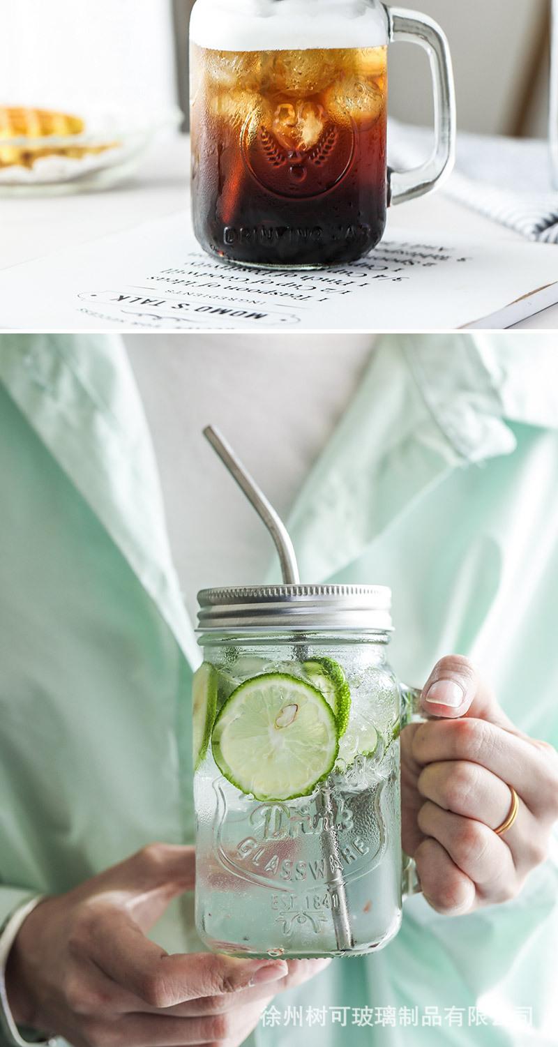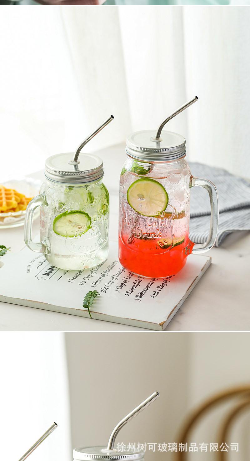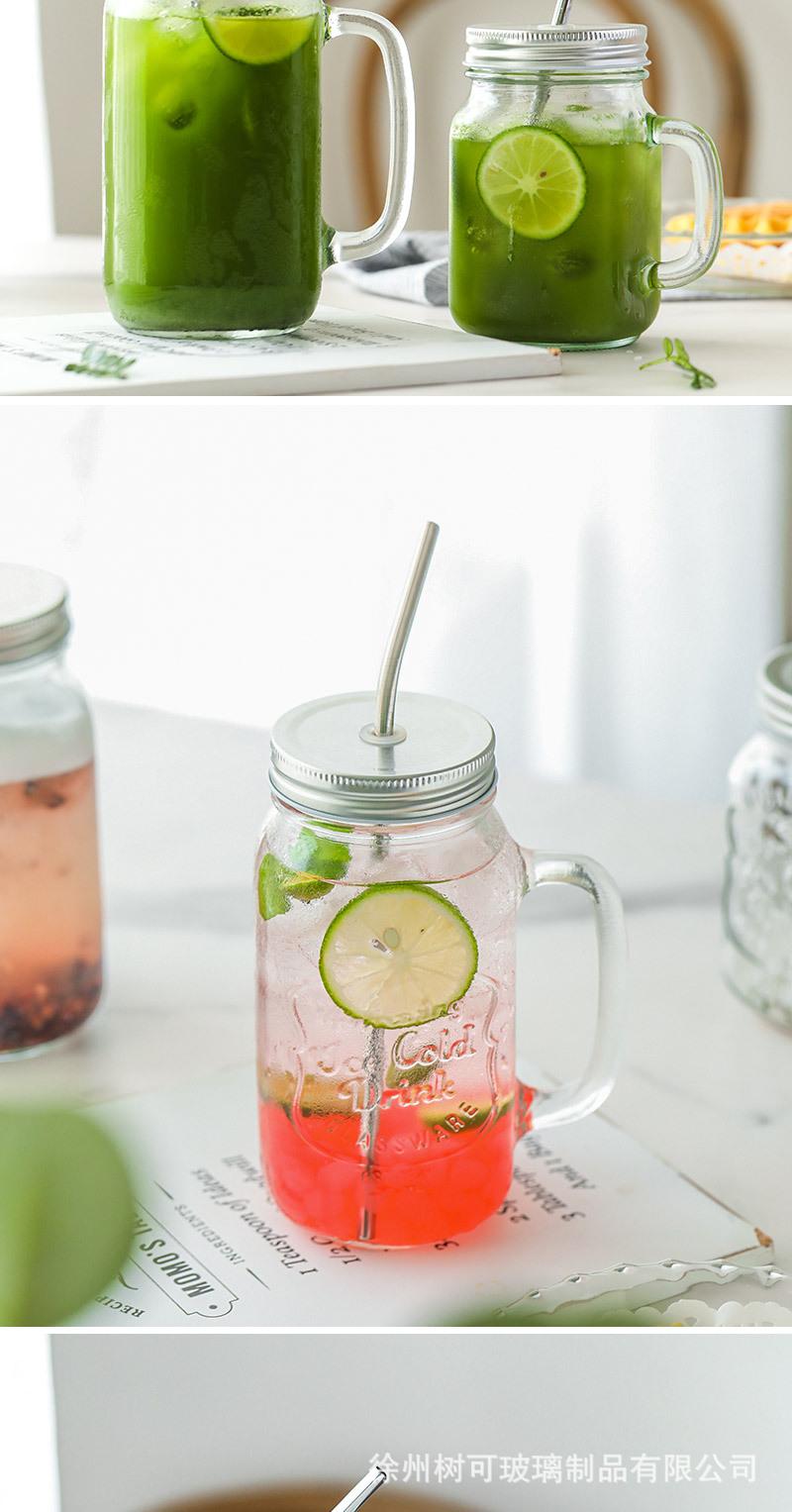 Taza de vidrio transparente de 730 ml con asa, taza de acero inoxidable con pajita para beber, taza de café, venta al por mayor de fábrica