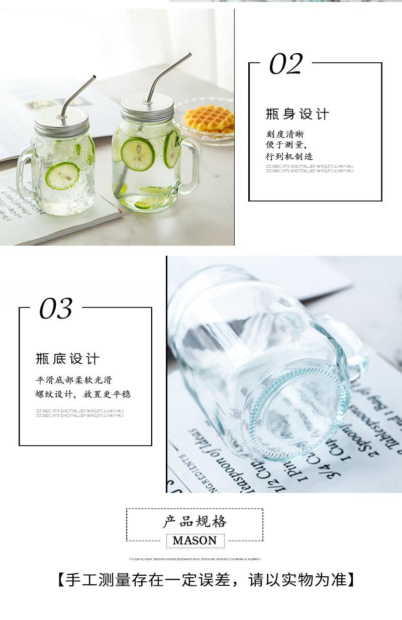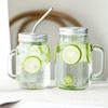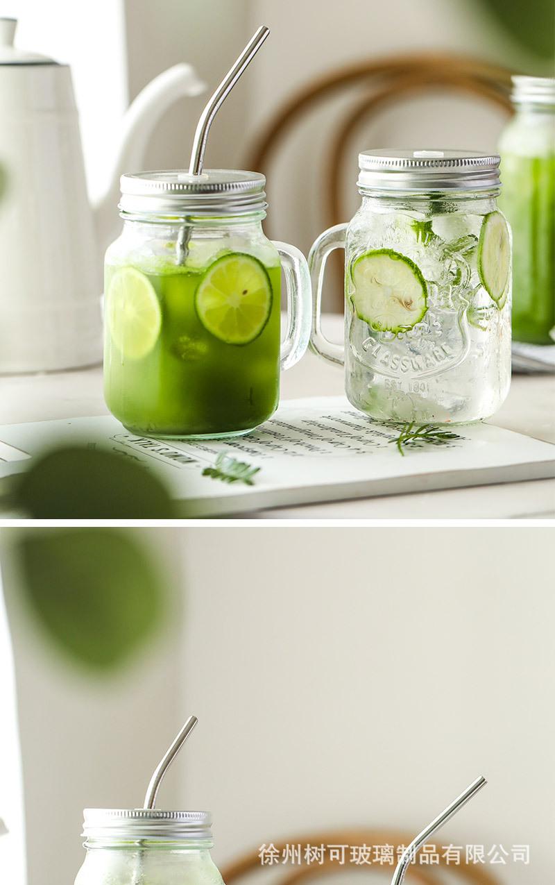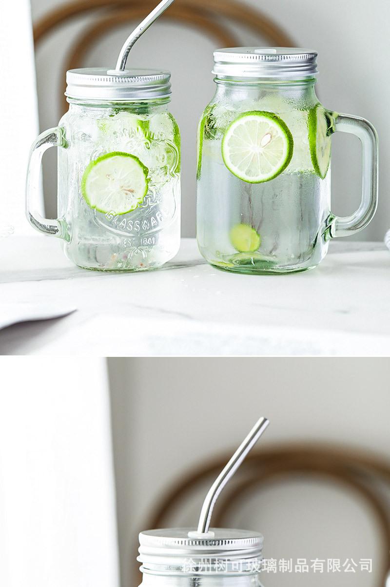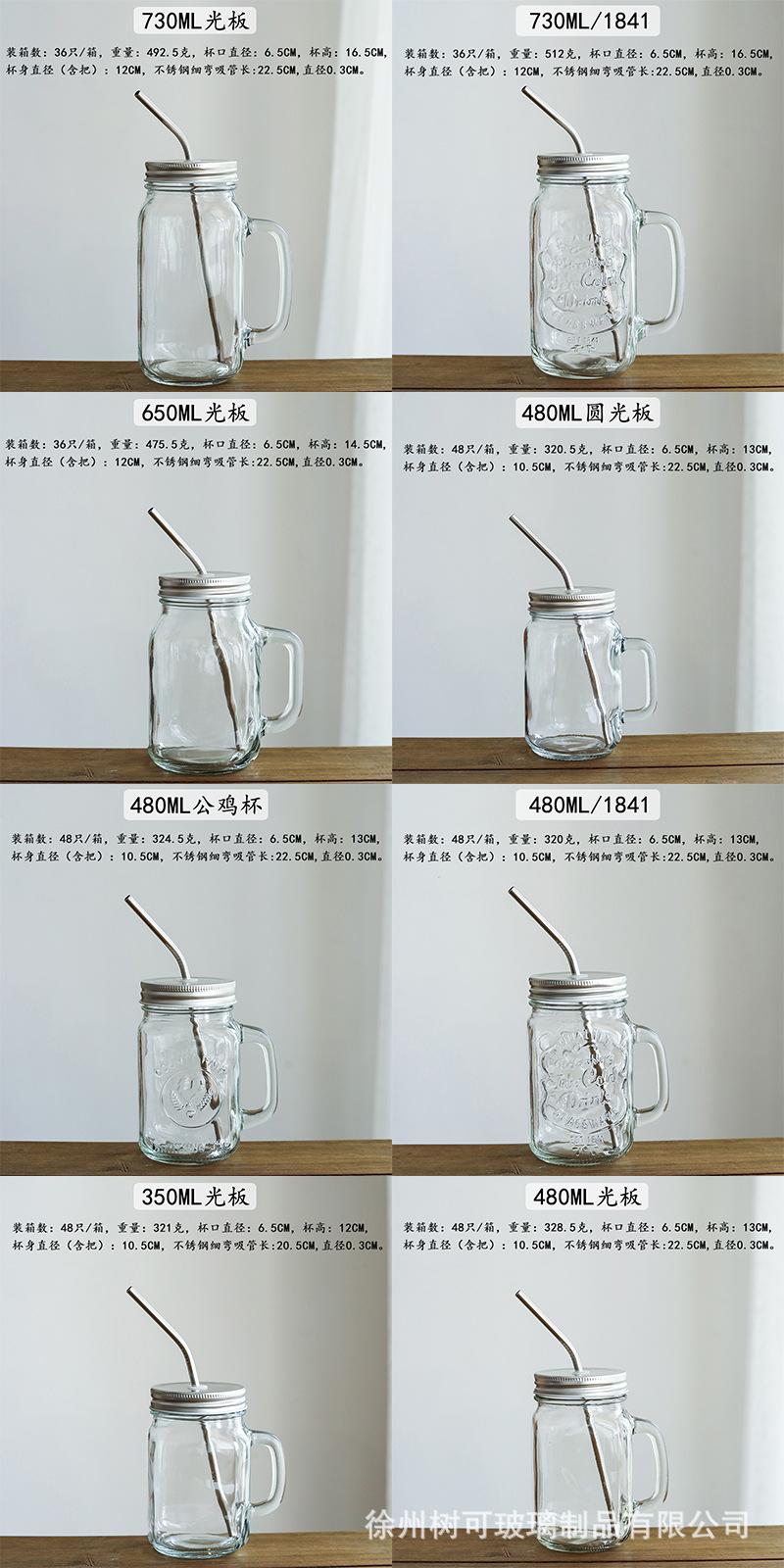 Taza de vidrio transparente de 730 ml con asa, taza de acero inoxidable con pajita para beber, taza de café, venta al por mayor de fábrica