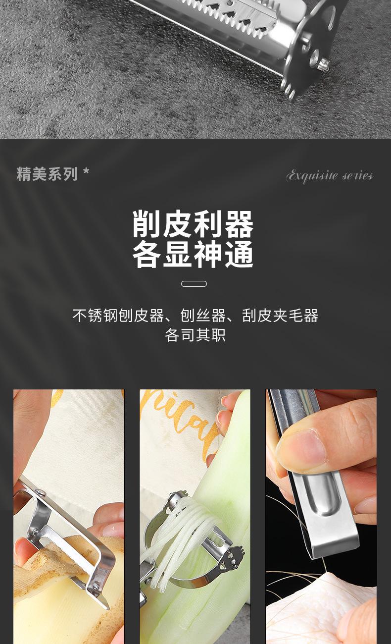 Juego de peladores multifuncionales de acero inoxidable de 3 piezas para pelar frutas y patatas.