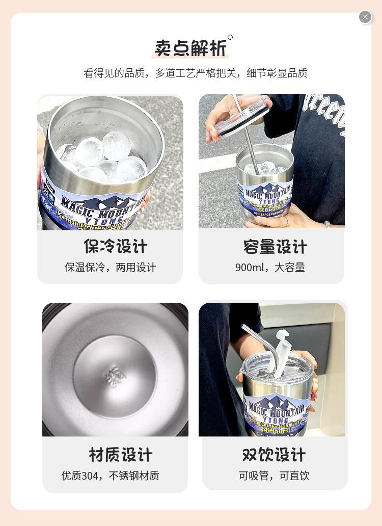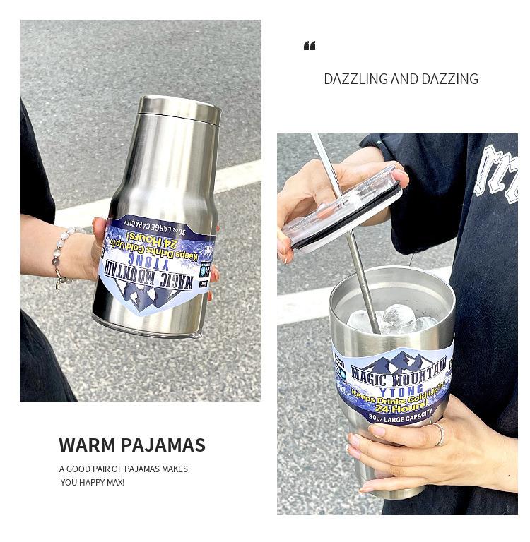 Vaso de Hielo Acero Inoxidable 304 Vaso Termo para Hielo Frío Doble Propósito Vaso de Agua para Pareja Verano Café Coche Gran Capacidad
