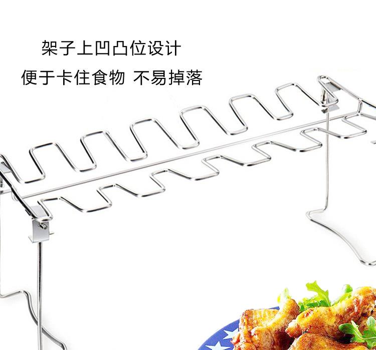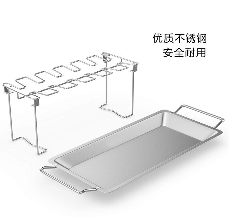 Función del producto: Adecuado para asar muslos de pollo, etc.; con una placa inferior para evitar fugas de manchas de aceite, plegable y desmontable para facilitar su almacenamiento.