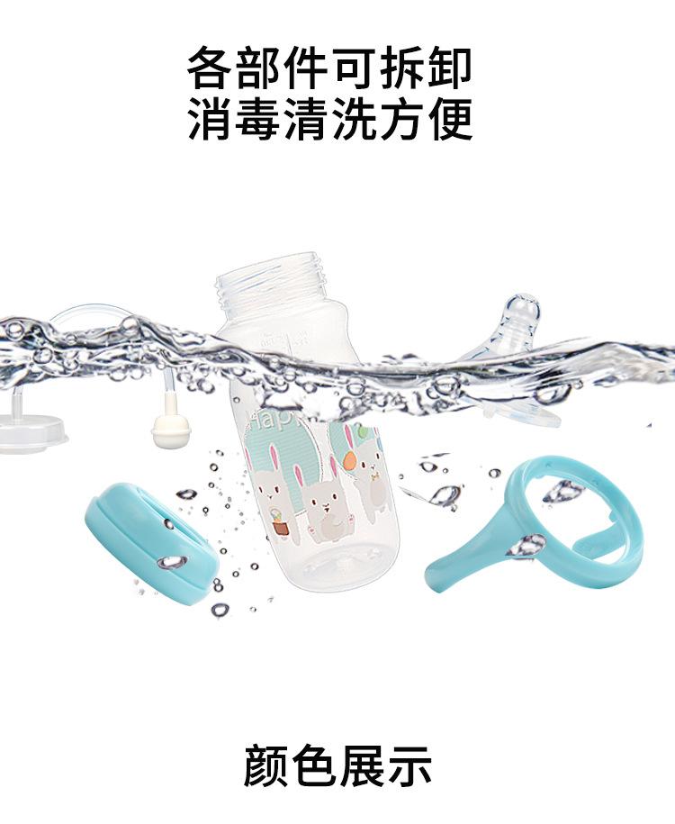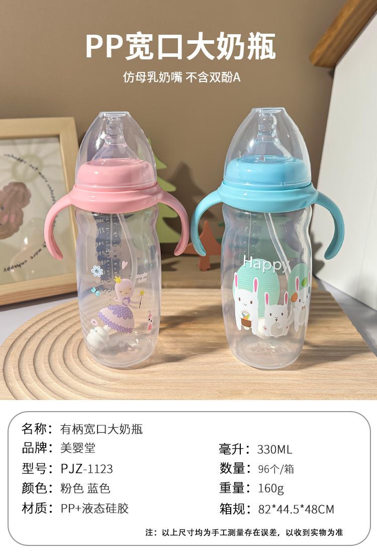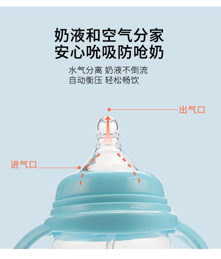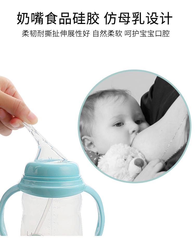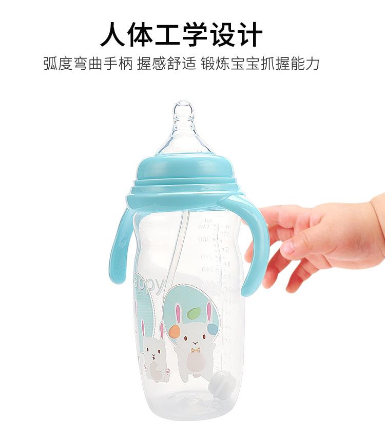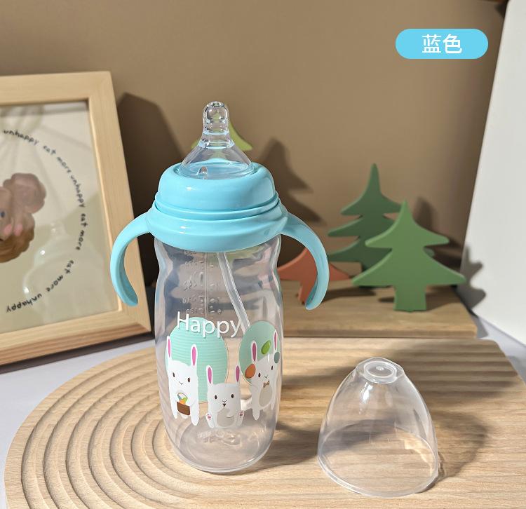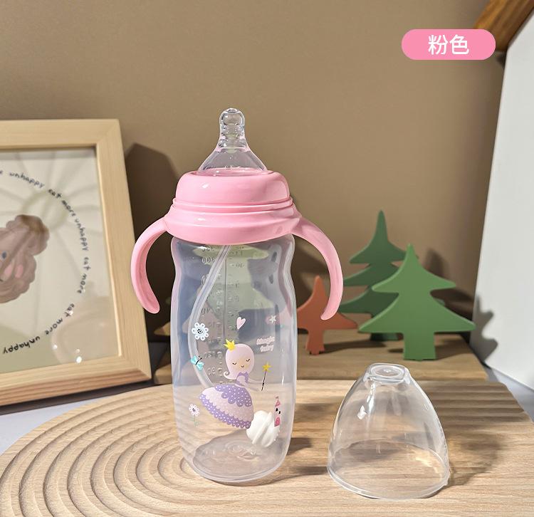 Biberón con asa, nuevo biberón de silicona de calibre ancho con dibujos animados, biberón grande anticaídas y antiflatulencia.