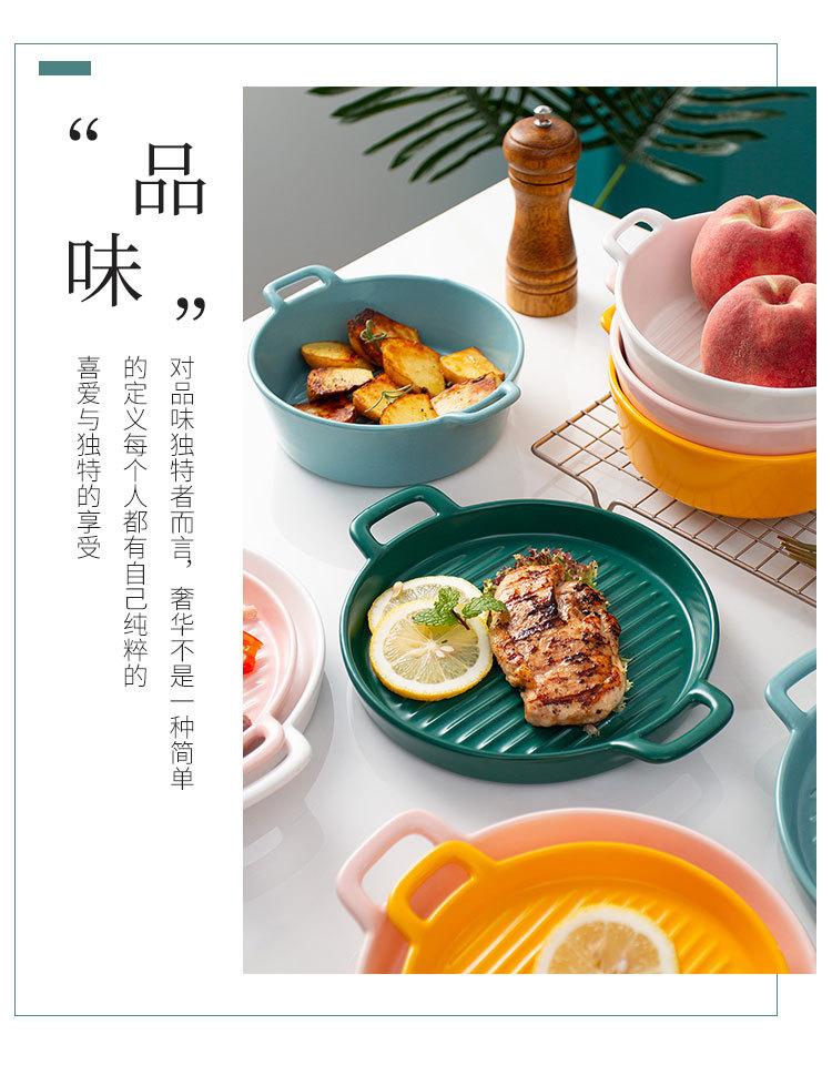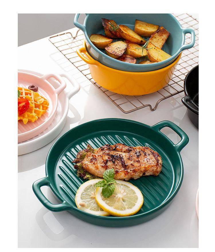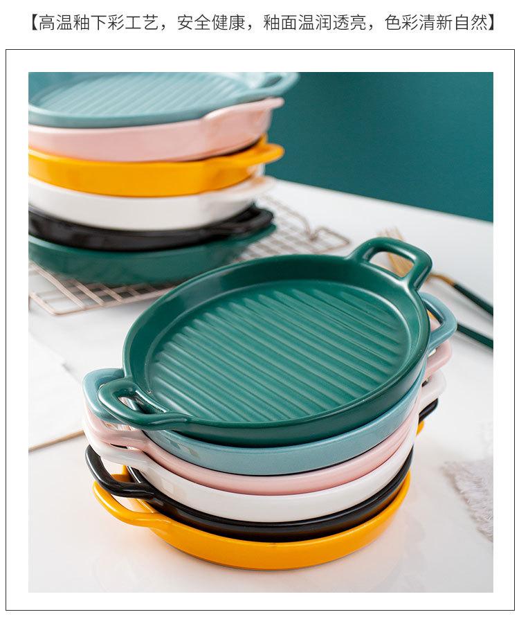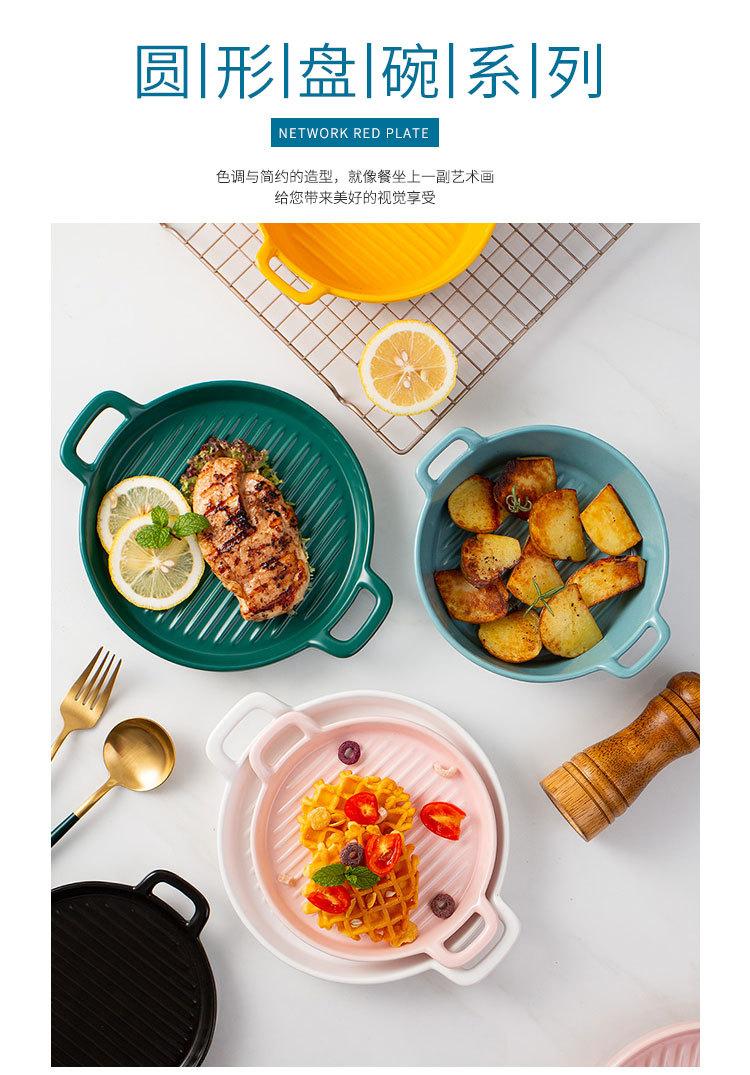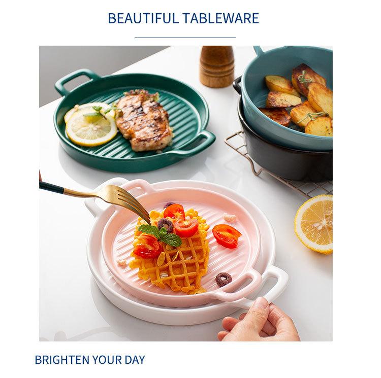 Plato de Cerámica Nórdico Binaural Plato Redondo Vajilla Plato Hogar Pasta Plato Occidental Horneado Pastel de Arroz Horneado Plato para Cena