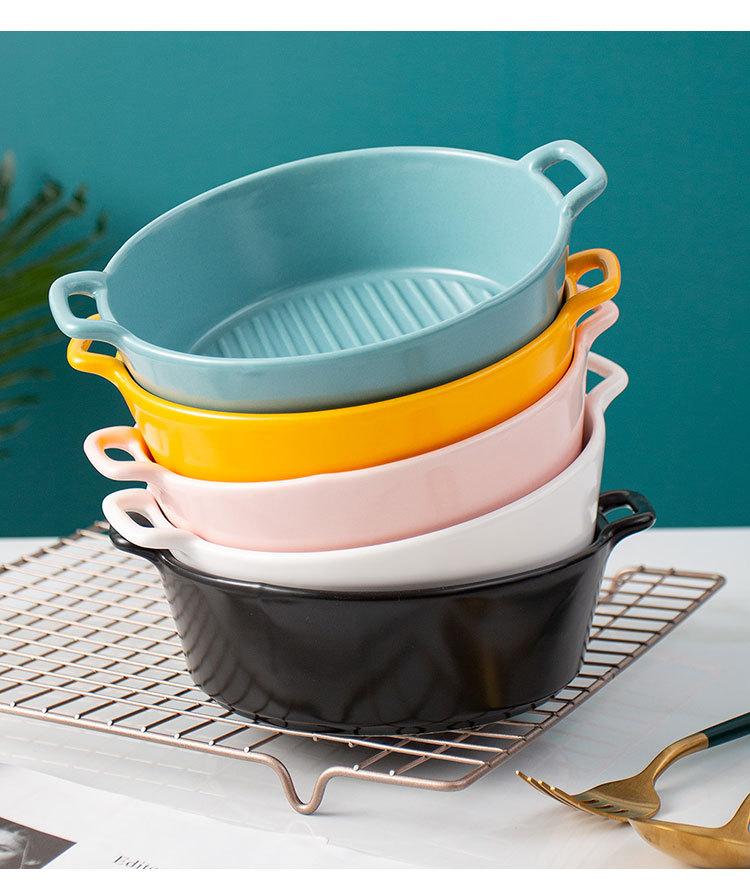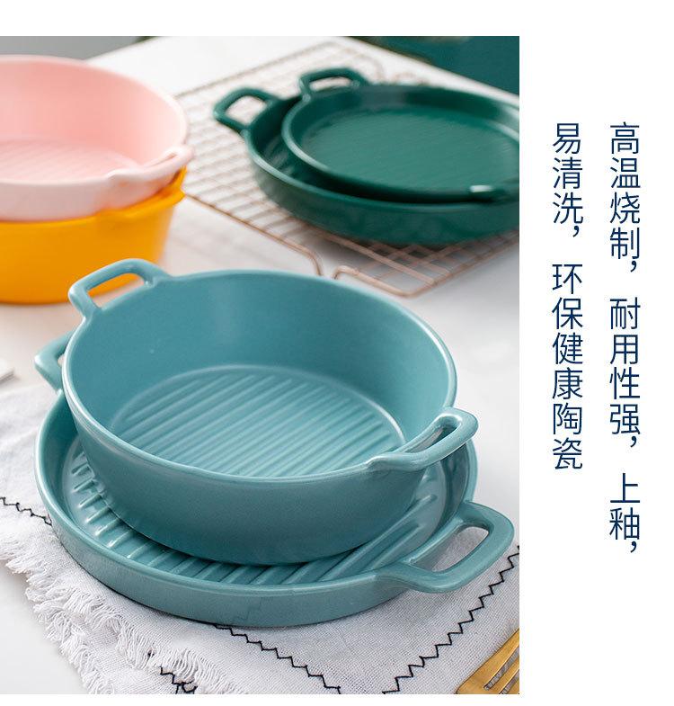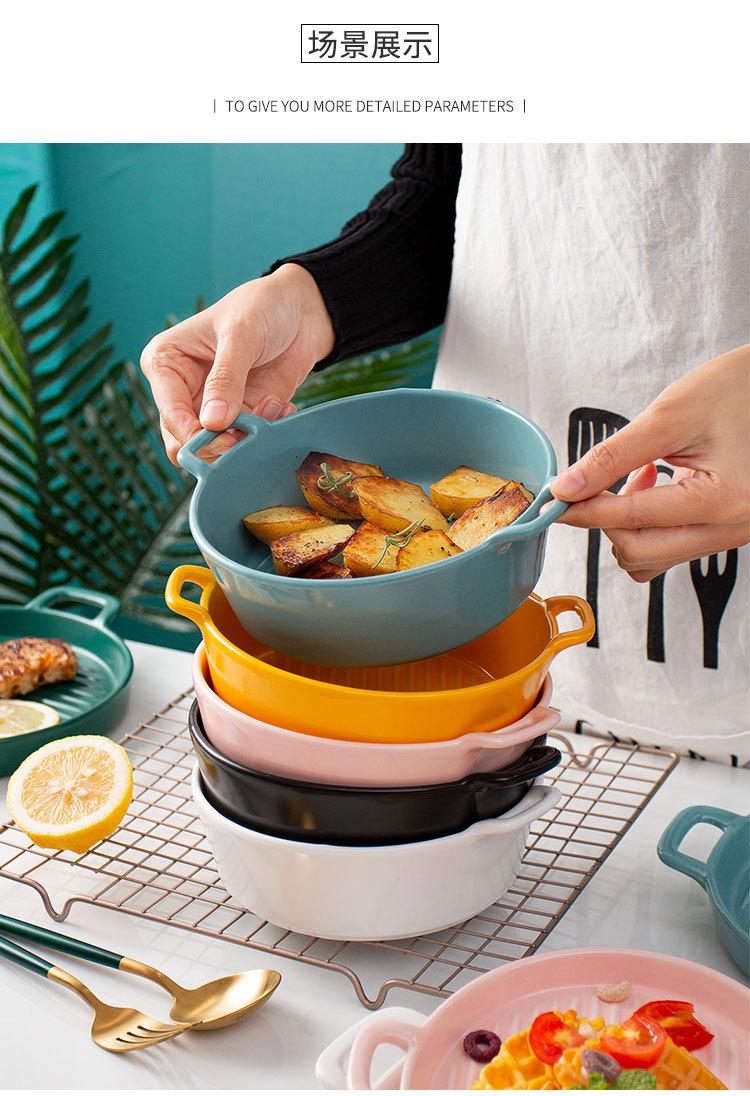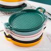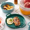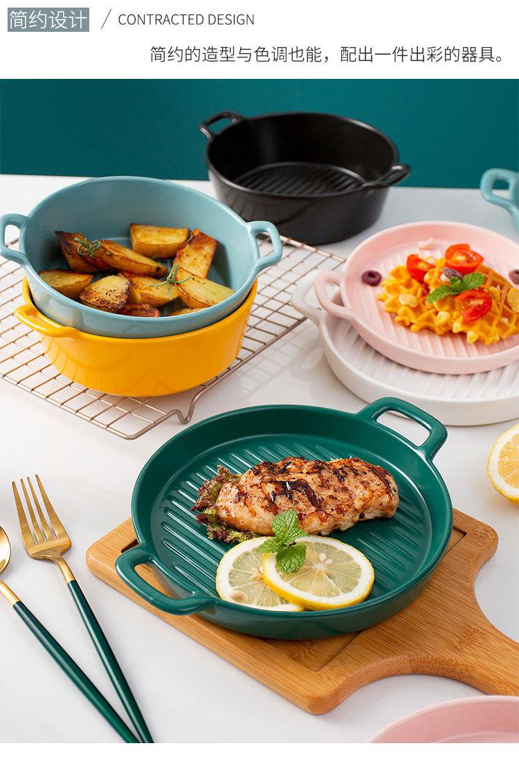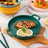 Plato de Cerámica Nórdico Binaural Plato Redondo Vajilla Plato Hogar Pasta Plato Occidental Horneado Pastel de Arroz Horneado Plato para Cena