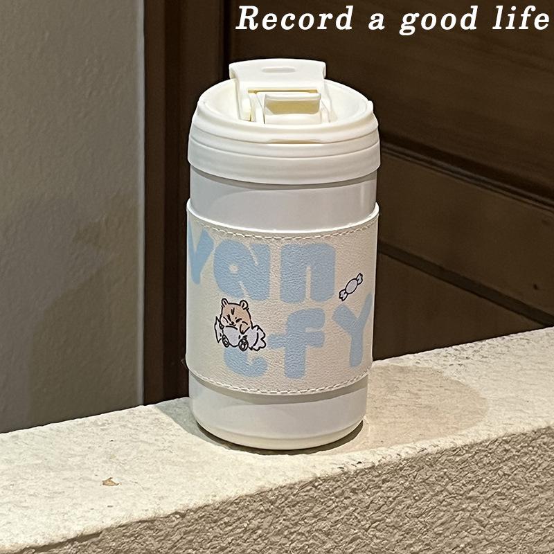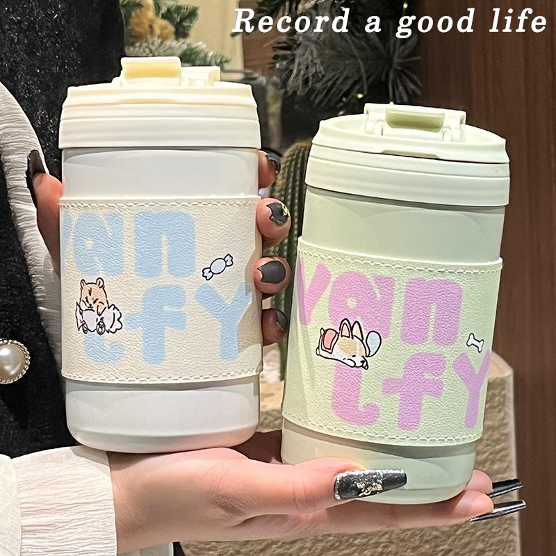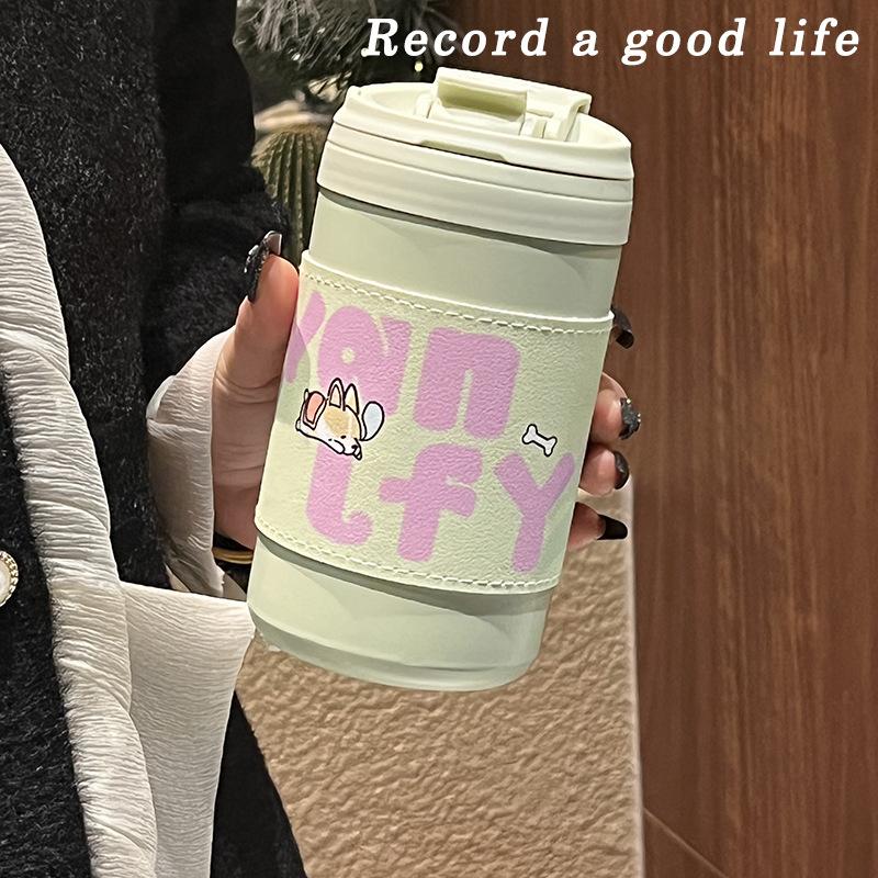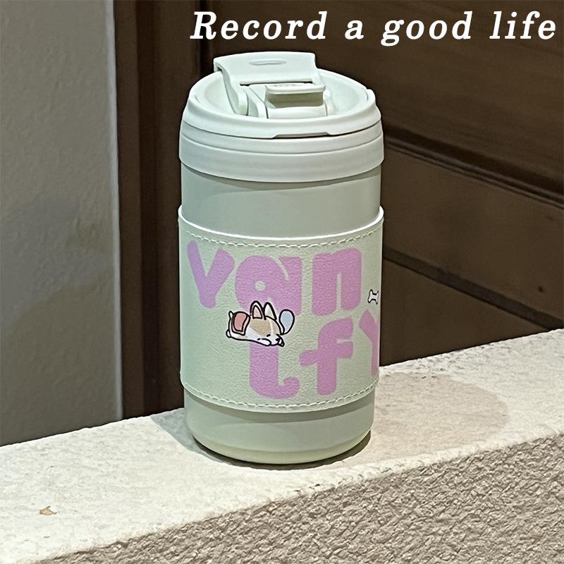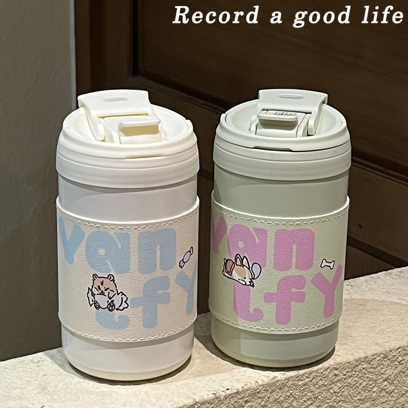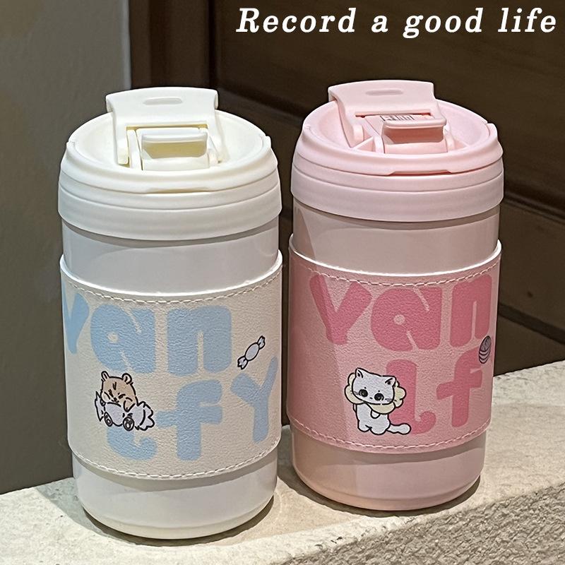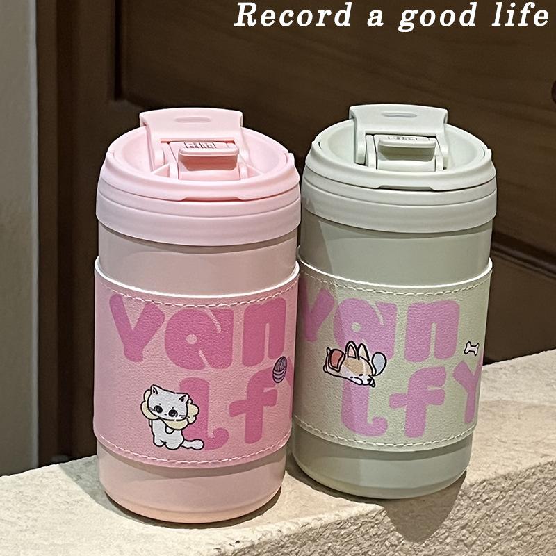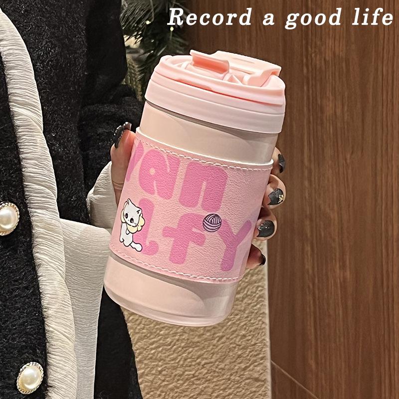 Taza de vacío resistente al calor, taza de agua roja de aspecto alto con asa, taza de paja de dibujos animados simple, taza de mano