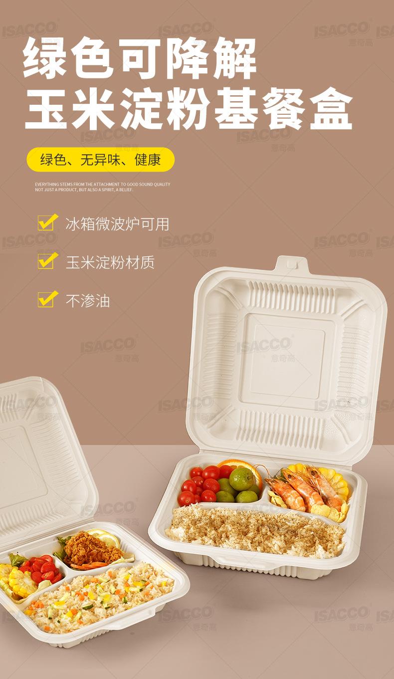 Lonchera desechable Yiqigao, lonchera desechable, caja de embalaje para llevar, lonchera de almidón de maíz, caja de comida rápida de tres rejillas y cuatro rejillas, tazón de embalaje, taza de salsa, caja de salsa, tazón de arroz, plato, lonchera biodegradable ecológica, ensalada rectangular, comida ligera, caja redonda, caja cuadrada