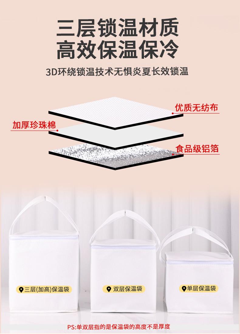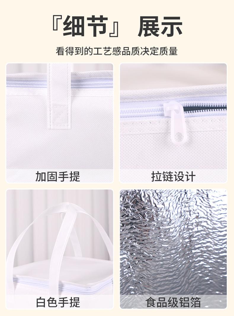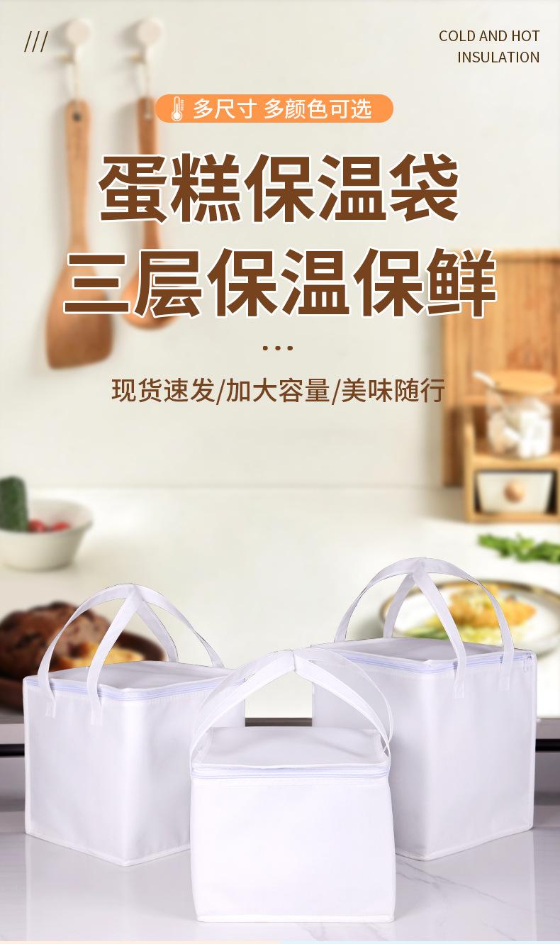 Bolsa aislante portátil para pasteles, color blanco, gruesa, para entrega a domicilio, con logotipo imprimible especial, de aluminio, con cremallera, para refrigerar y personalizar.
