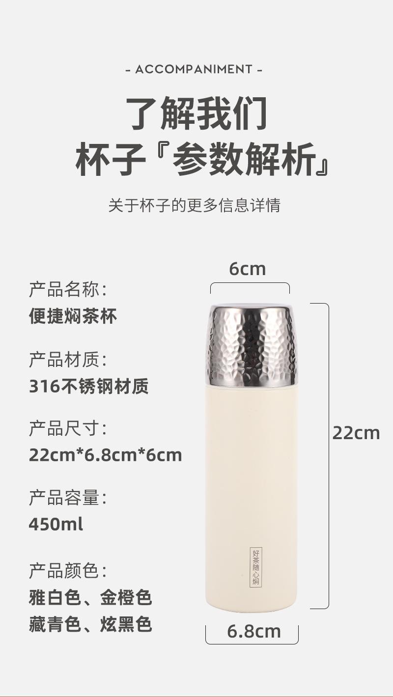 Vaso aislado de acero inoxidable 316 de alta apariencia, cubierta totalmente de acero con colador, taza para té al vacío, taza para separación de té