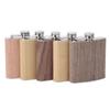 Nueva petaca de vino portátil retro de acero inoxidable para exteriores, mini chapa de cuero con veta de madera, petaca pequeña, juego de vino para hombre