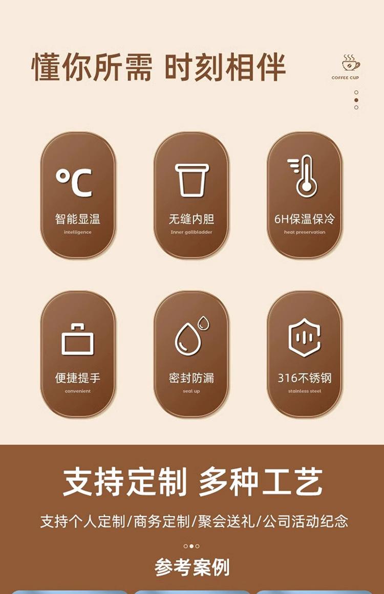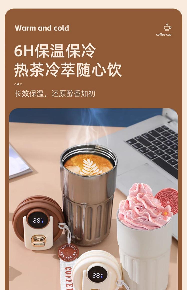 Taza de café de acero inoxidable 316, termo portátil con pantalla inteligente para niñas, regalo de gran valor para el hogar, taza de agua publicitaria.