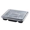 Lonchera desechable transparente negra, rectangular, para comida rápida, para llevar, con capacidad para tres o cuatro personas, y dos loncheras con tapa.