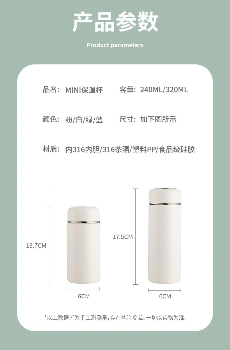 Mini termo portátil de bolsillo, de acero inoxidable 316, ideal como regalo de alta calidad para niñas.