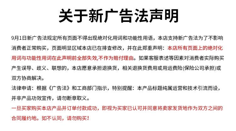 (2) Lea atentamente la descripción del producto antes de comprar. Si tiene alguna pregunta, consúltela antes de realizar el pedido. (3) Las cajas exteriores de nuestros envíos están selladas con cinta adhesiva transparente. Si al firmar la recepción, el destinatario descubre que la cinta de la caja exterior se ha cortado, ábrala y cuente la cantidad. Tras confirmar que es correcta, firme la recepción. Si el mensajero no está de acuerdo con la cantidad, póngase en contacto con nosotros a tiempo para resolverlo. Si firma el albarán de entrega, significa que reconoce la cantidad, el contenido y la integridad de la mercancía, y el transportista ya no será responsable, y nuestra tienda ya no asumirá ninguna pérdida causada por el contenido inconsistente, la falta o el daño de la mercancía. Si hay algún problema de calidad con el producto, tome una foto del producto real y póngase en contacto con el cliente en línea. Le ayudaremos activamente a solucionarlo. Si el producto presenta una diferencia de color, etc., no es un problema de calidad. Nuestra empresa no acepta devoluciones ni cambios sin motivo. Por favor, comprenda.
