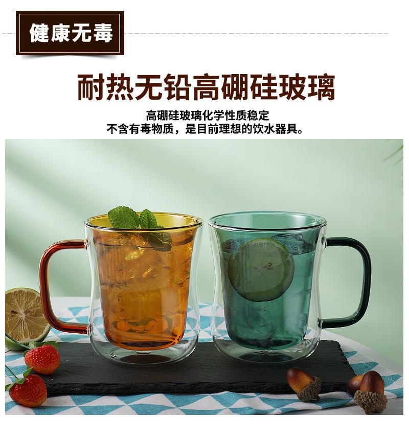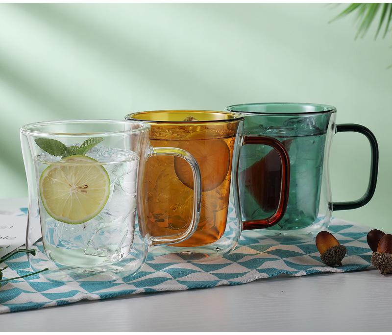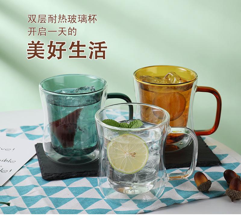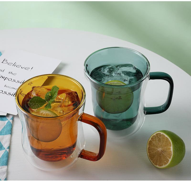 Taza de doble capa personalizada, taza de vidrio resistente al calor, taza de vidrio con revestimiento de color creativo resistente al calor, taza de té, taza de café