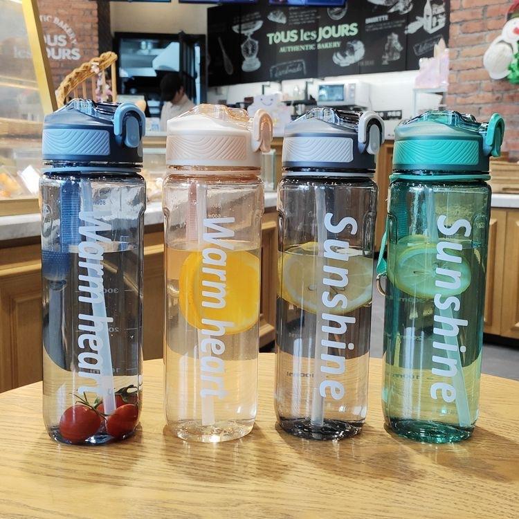 Ventosa de plástico de gran capacidad de estilo coreano para hombres y mujeres estudiantes, taza de agua deportiva portátil sencilla, taza informal personalizada y creativa.
