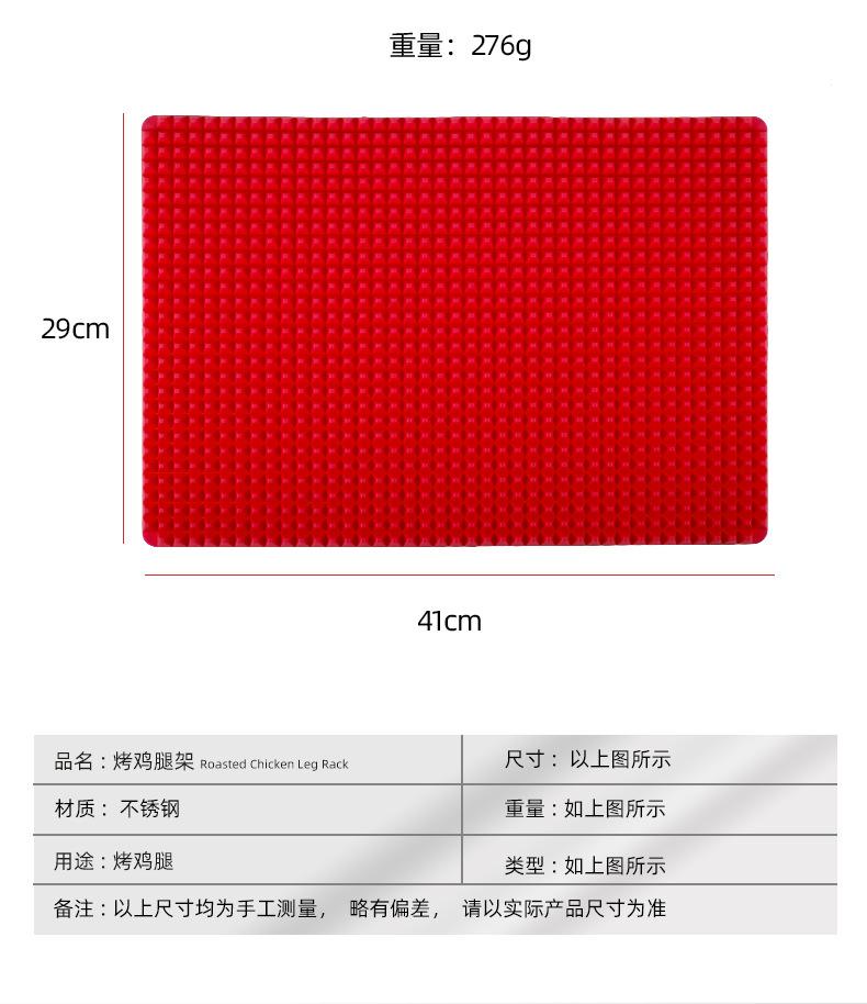 Stainless Steel Grilled Chicken Leg Rack with Tray, Red pyramid baking mat