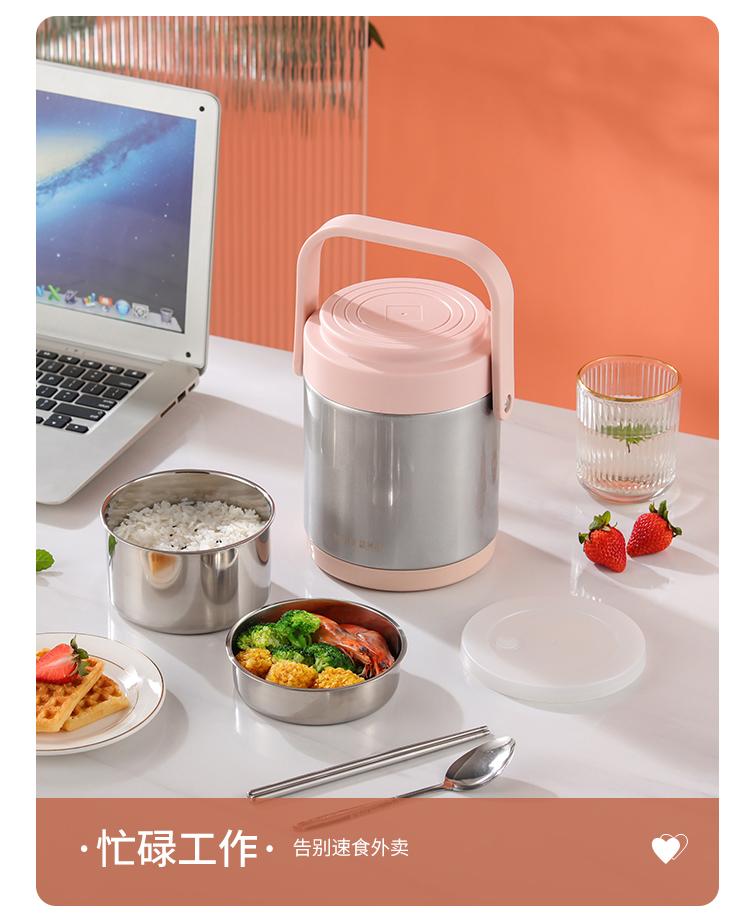 1.9l silver adult three-layer 304 vacuum insulation for 9 hours chopsticks and spoons + insulation bag