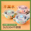 Cuenco de aislamiento de acero inoxidable 304 para niños, tazón de suplemento alimenticio con forma de dibujos animados para bebés, tenedor y cuchara, vajilla de silicona para bebés.