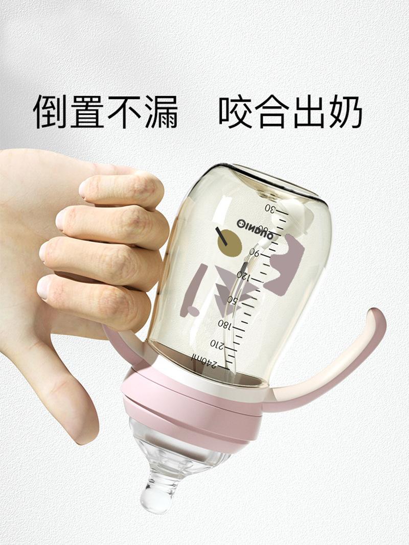 Biberón para recién nacidos, grande, resistente a caídas, calibre ancho, antiflatulencia, resistente a altas temperaturas, con ventosa y asa, ppsu