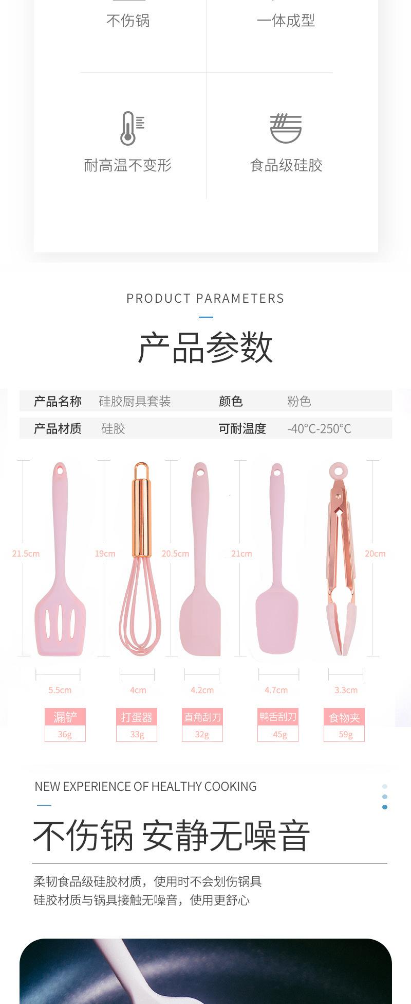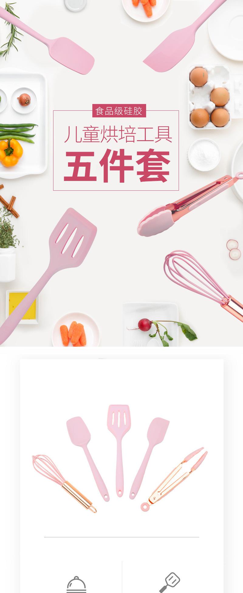 Espátula mini de silicona con mango de oro rosa para repostería transfronteriza, batidor de huevos, pinza para alimentos, herramientas para suplementos alimenticios infantiles, juego de cinco piezas