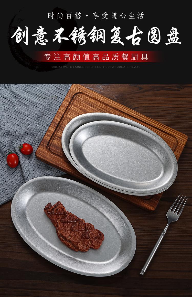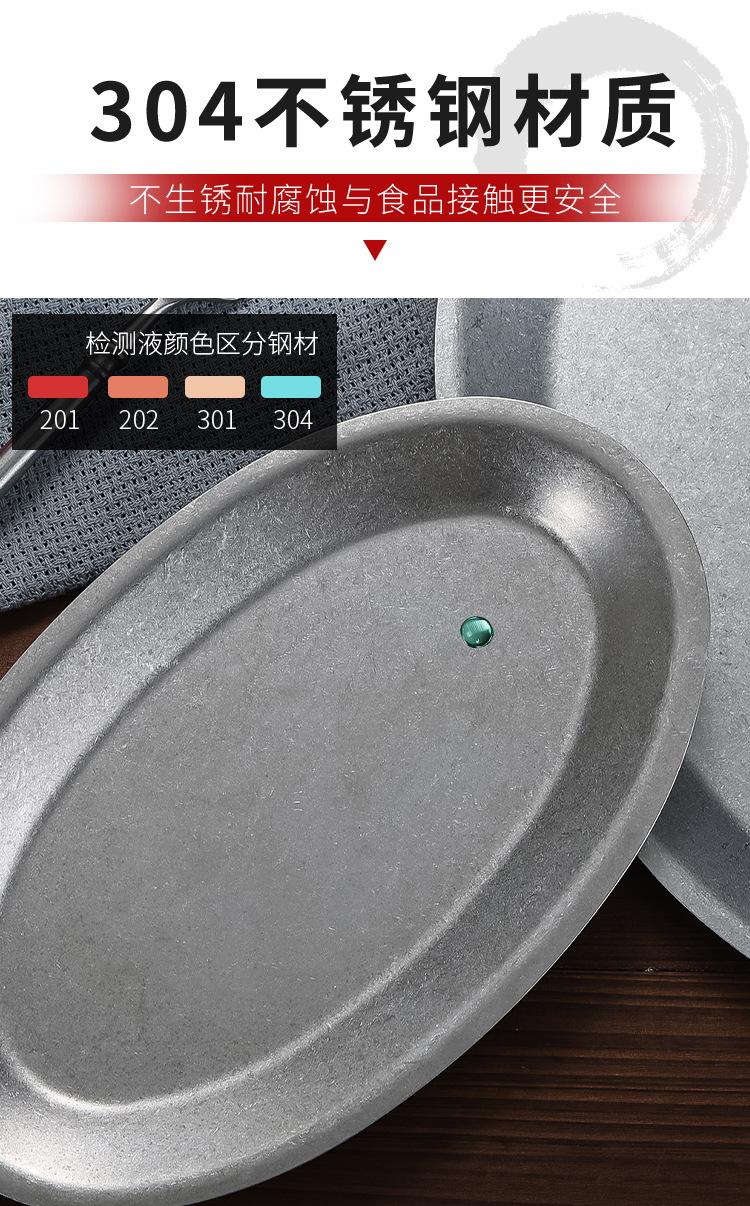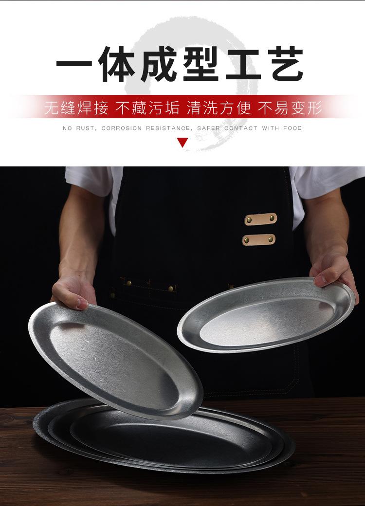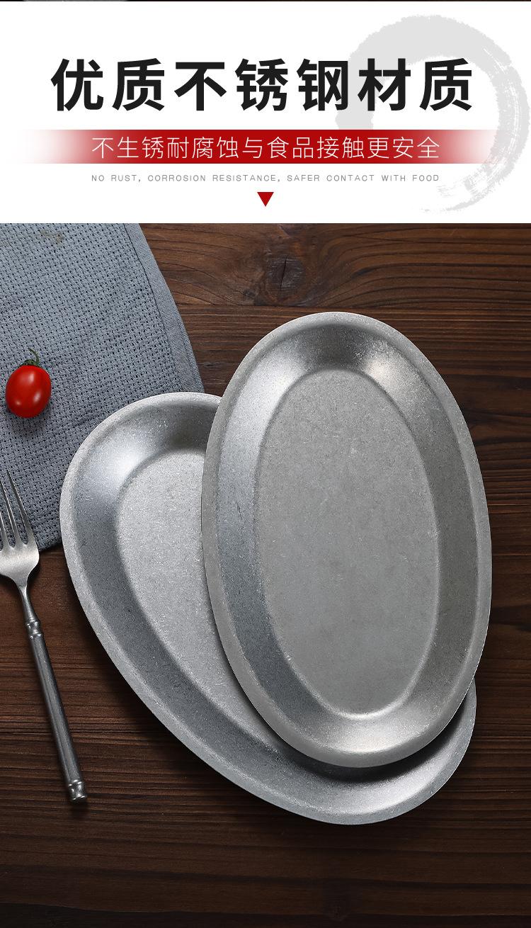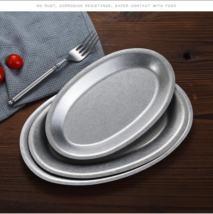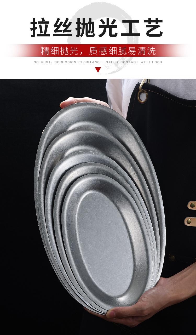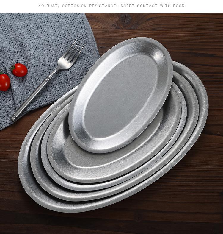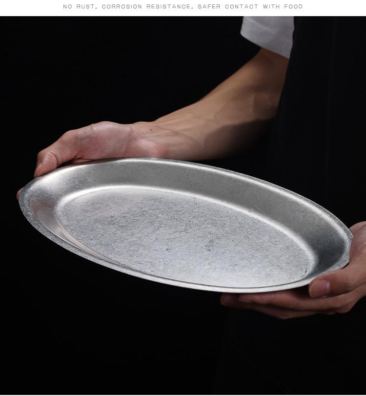 Plato de pescado de acero inoxidable retro, plato ovalado, plato para salchichas en polvo, plato creativo denier, plato para barbacoa, plato para olla caliente, bandeja, valor de color
