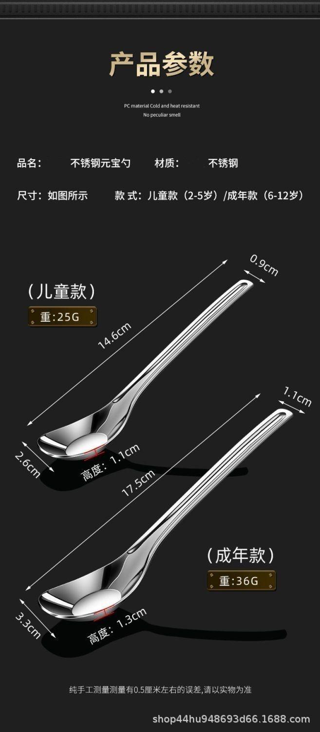 Cuchara lingote cuchara engrosada hogar comer alimentar profundización cuchara cuchara grande Niños Bebé acero inoxidable cuchara lingote