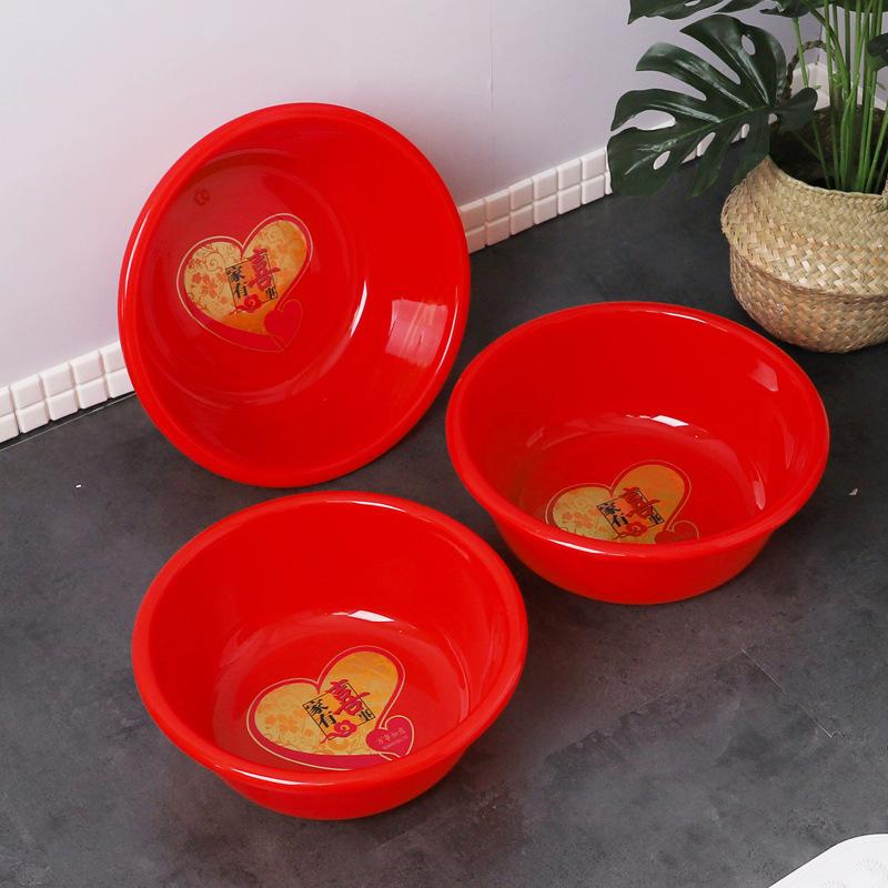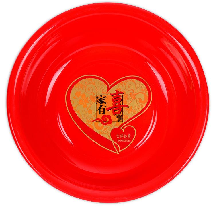 Venta al por mayor 43cm suministros festivos palangana de plástico roja grande palangana para boda hogar engrosada profundizada boda hogar boda palangana